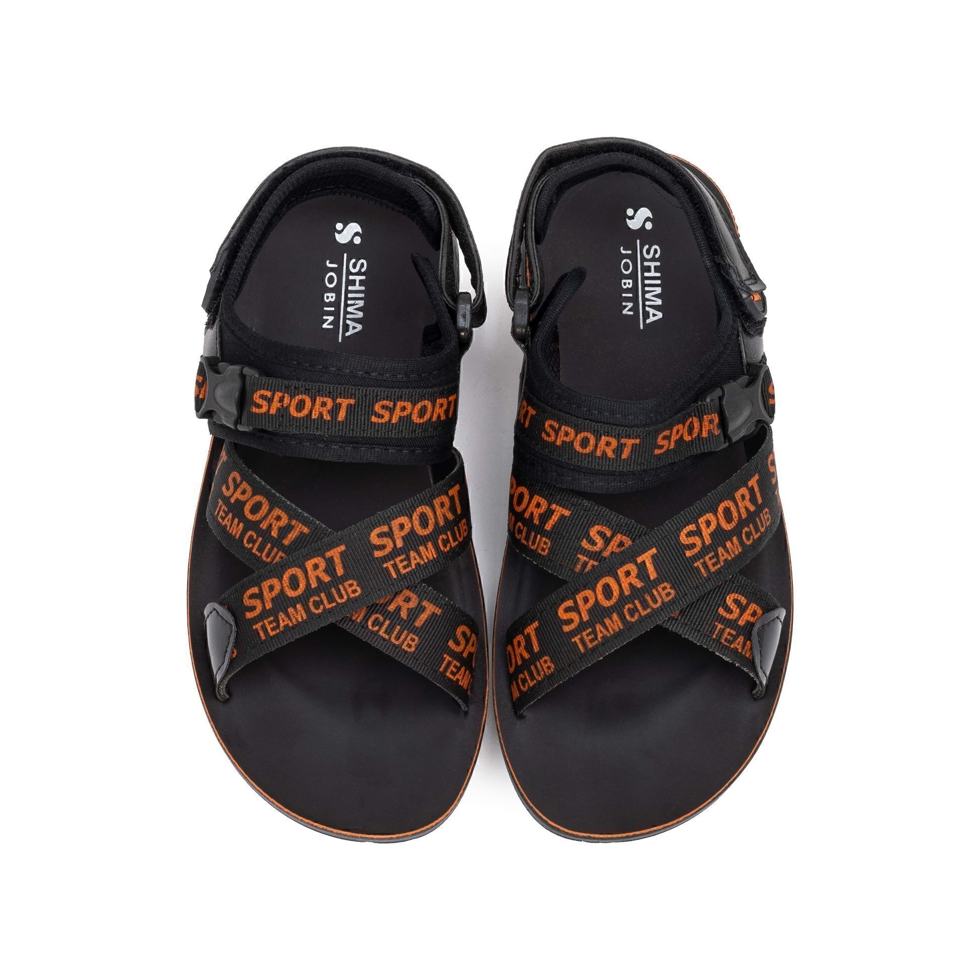 صندل پسرانه شیما مدل ژوبین ضربدری مشکی نارنجی