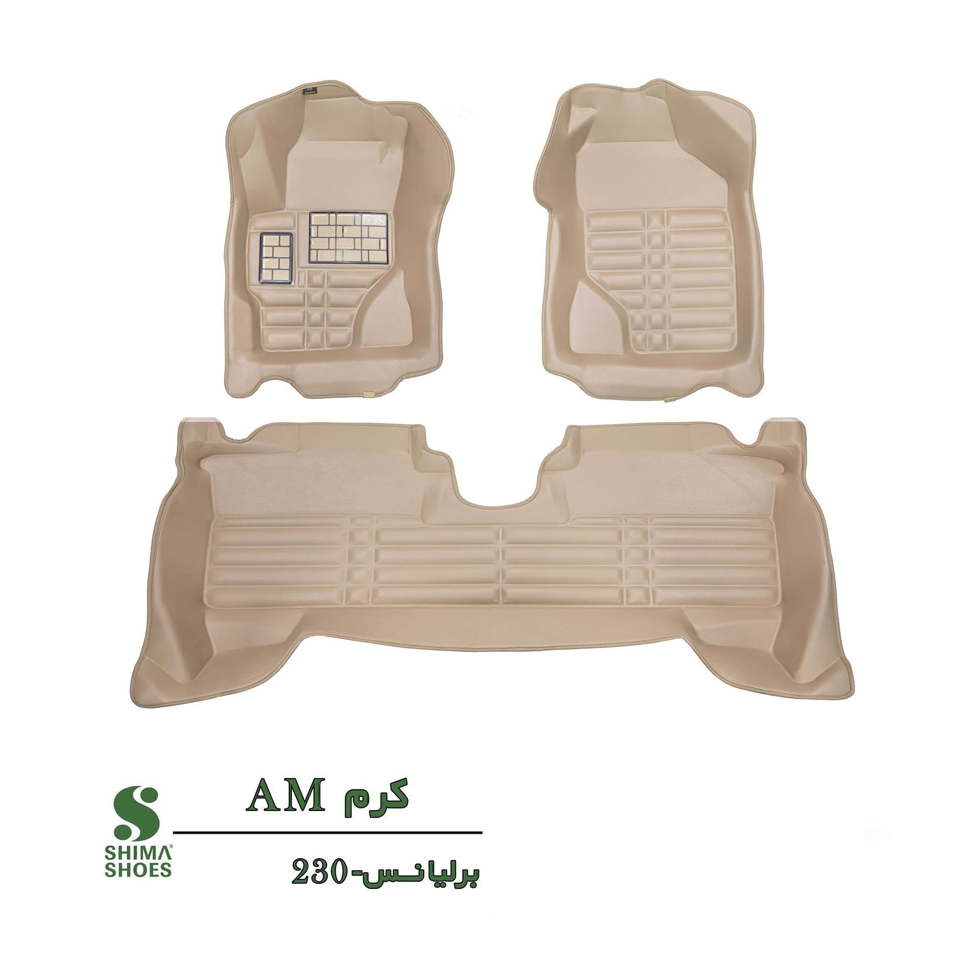 *مناسب خودرو برلیانس H230 * رویه چرم مصنوعی PVC * لایه پشتی تریکو ساده * دارای EVA در لایه میانی * دوام و نرمی بسیار مناسب * قالب دقیق خودرو * قابل شستشو * ضد لغزش * عدم جذب آب هنگام شستشو