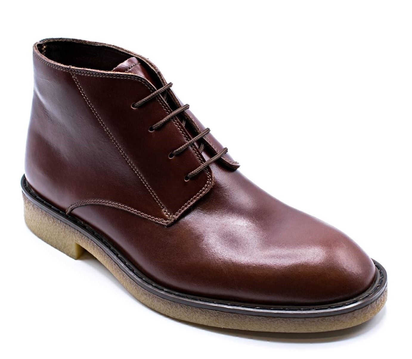 بوت مردانه چرمی شیما مدل بندی قهوه ای زیره کرم