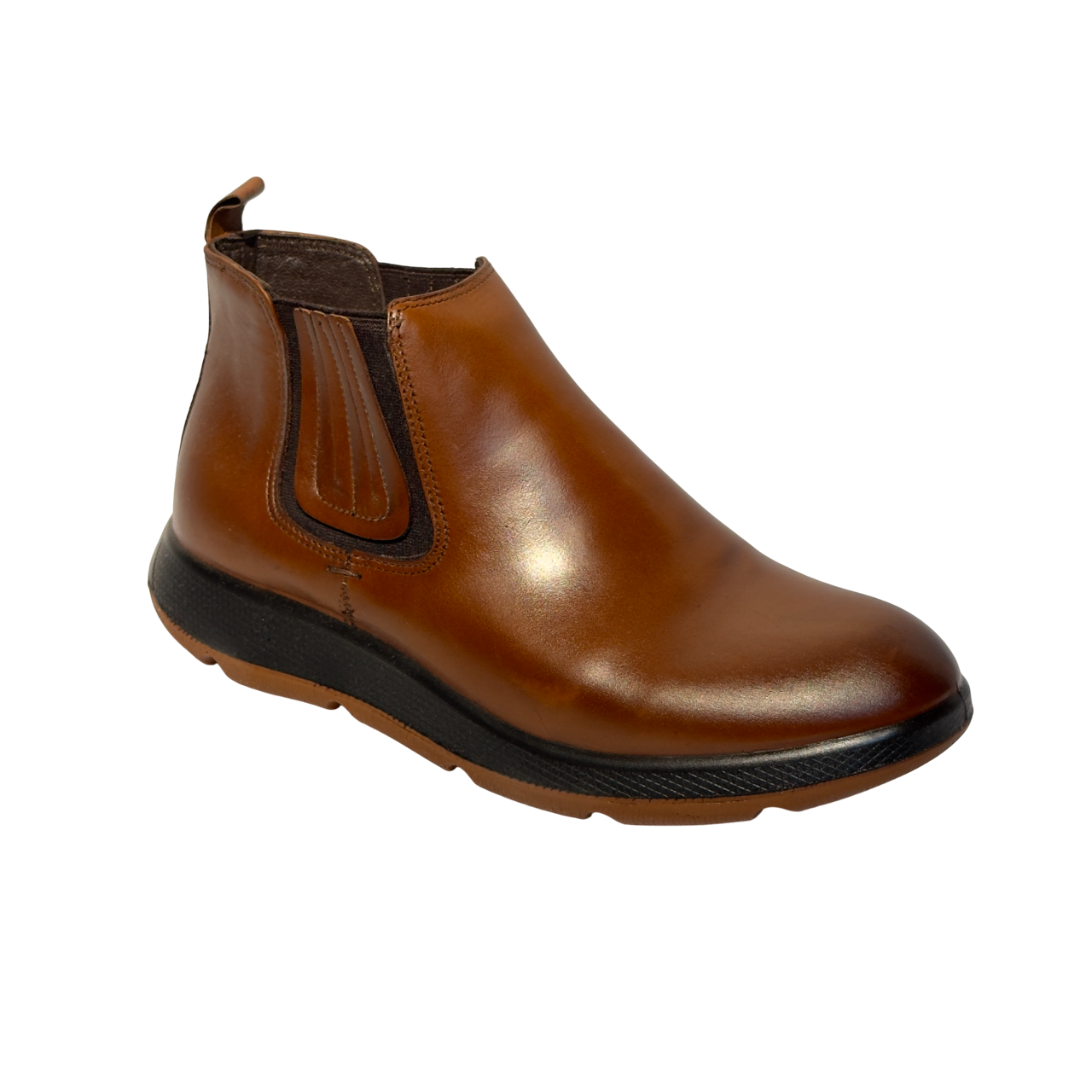 نیم بوت مردانه چرمی شیما مدل گرند بدون بند عسلی