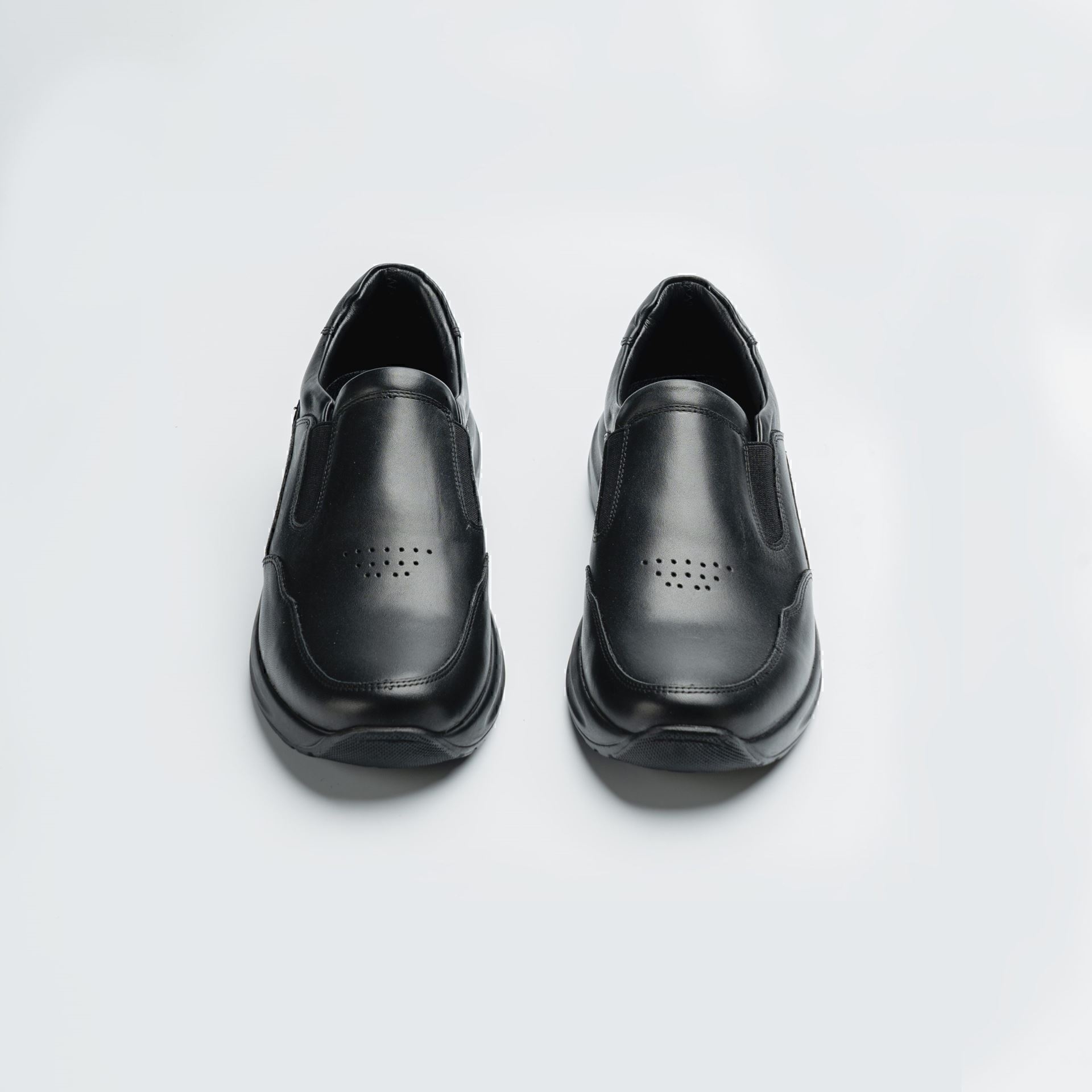 کفش مردانه چرمی شیما مدل 2104 بدون بند مشکی