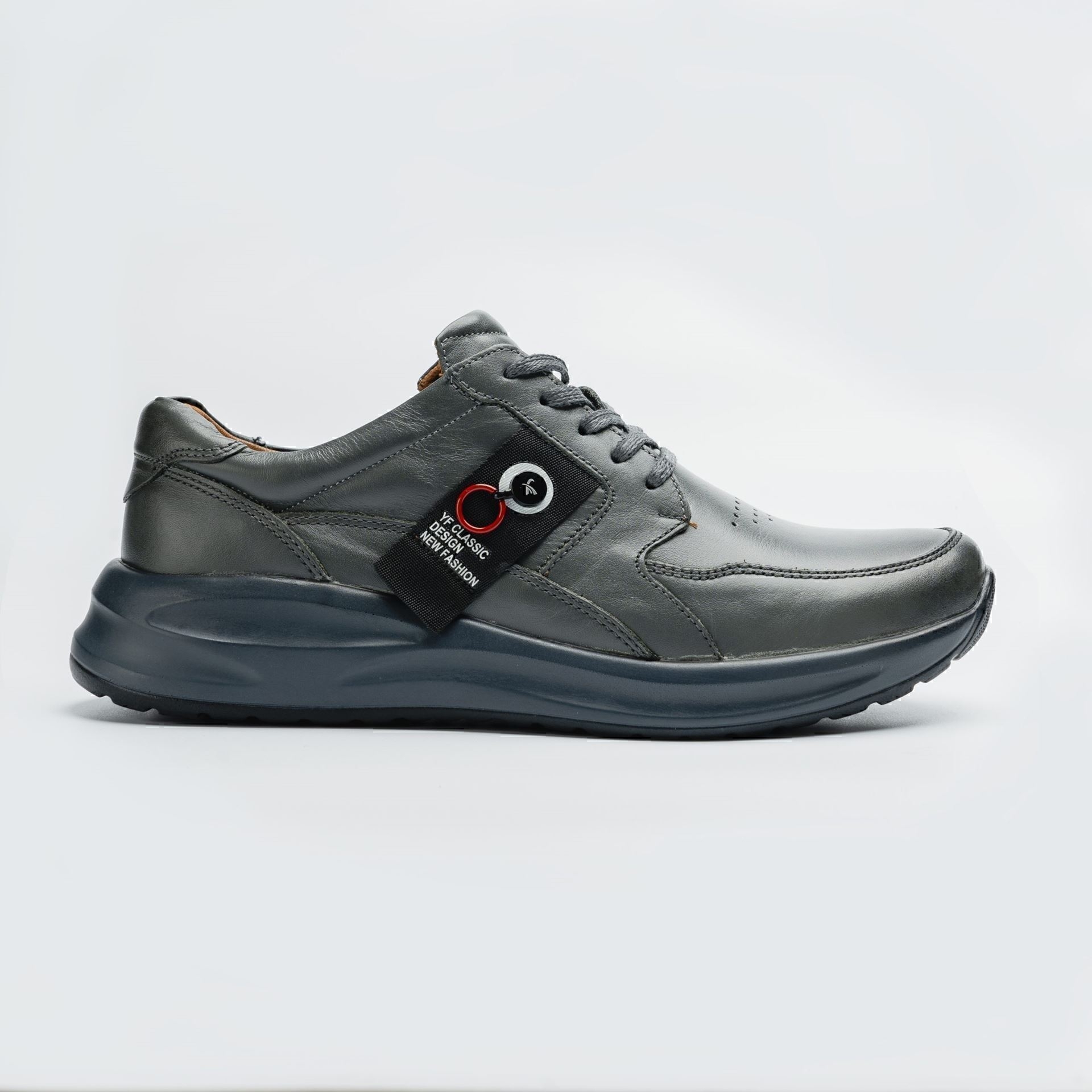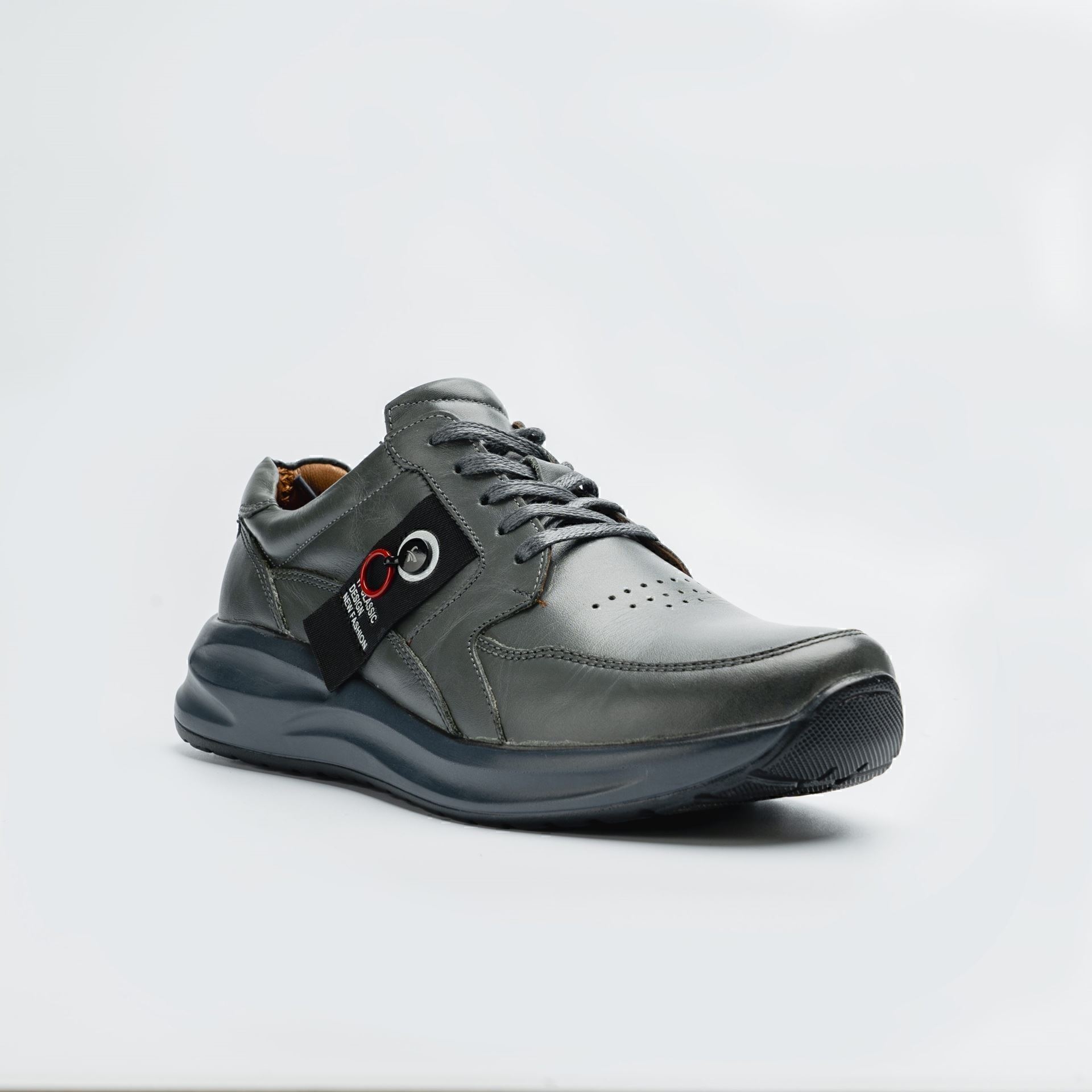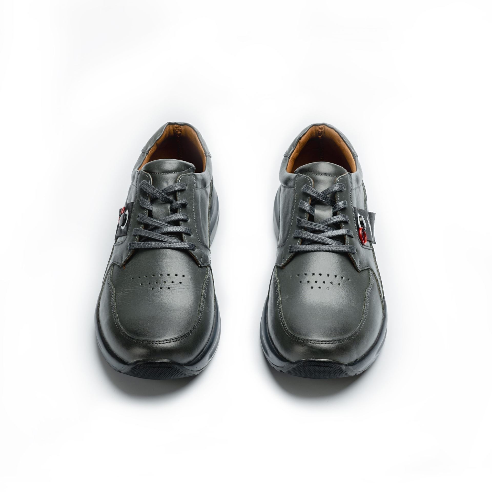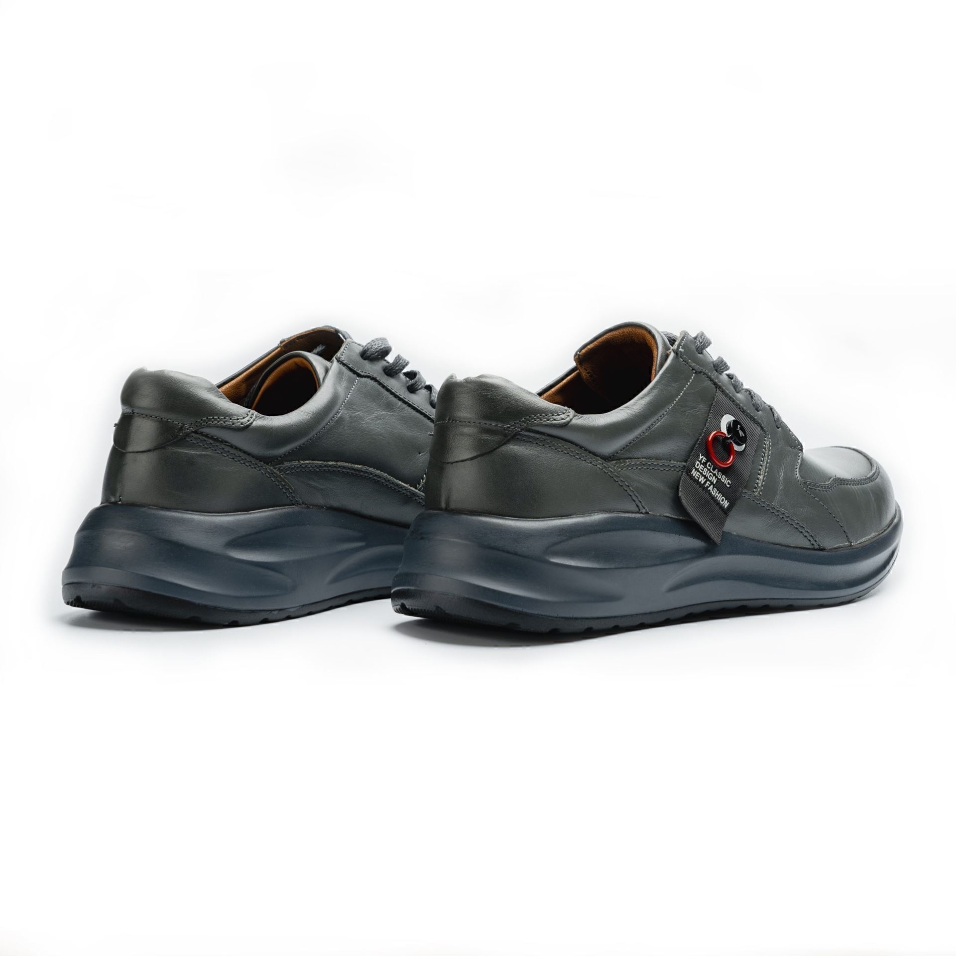 کفش مردانه چرمی شیما مدل 2104 بندی طوسی