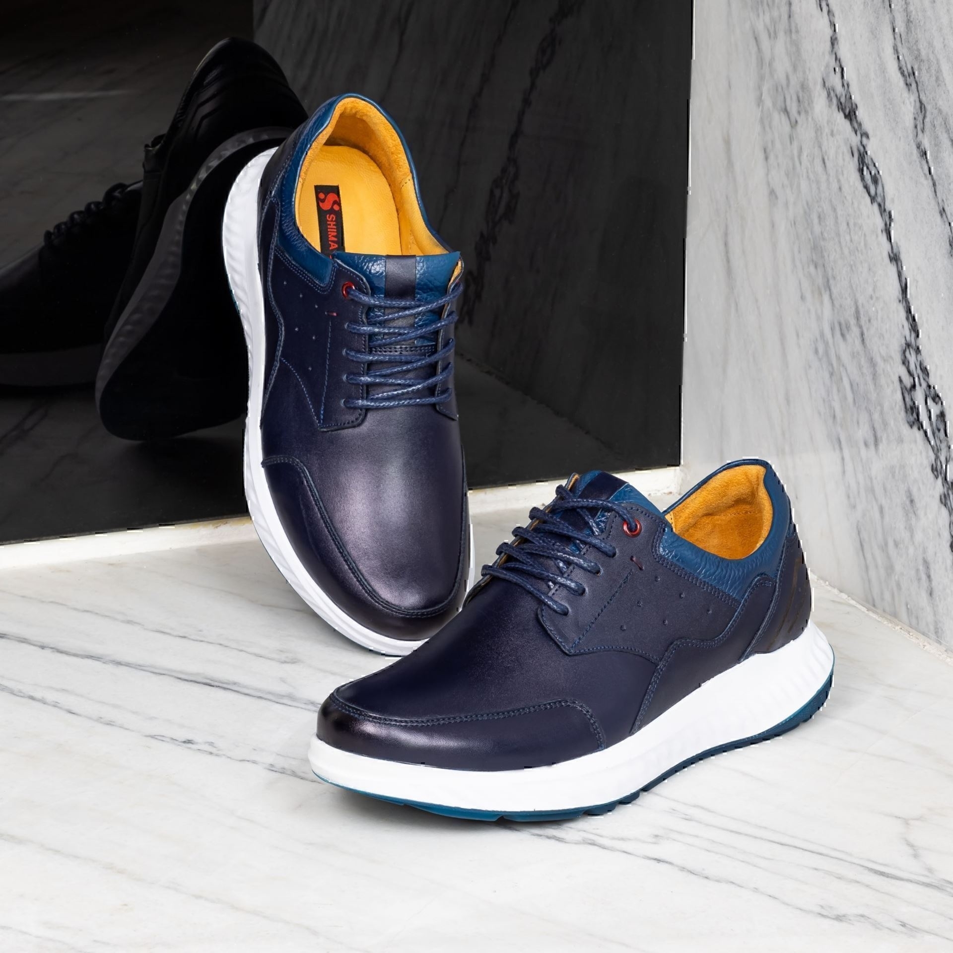 کفش مردانه چرمی شیما مدل لیون بندی سرمه ای
