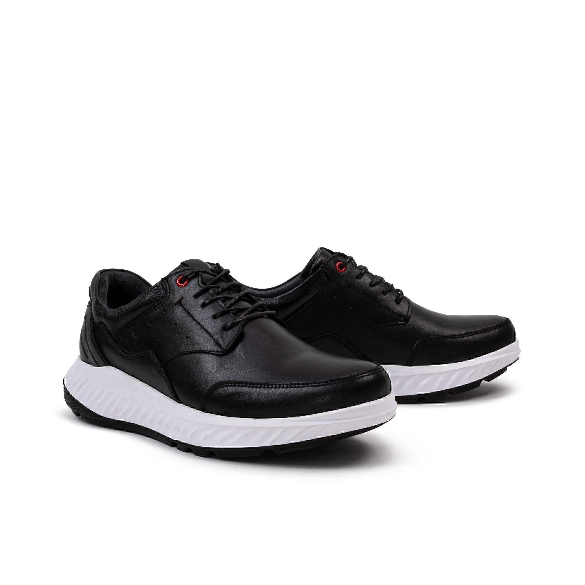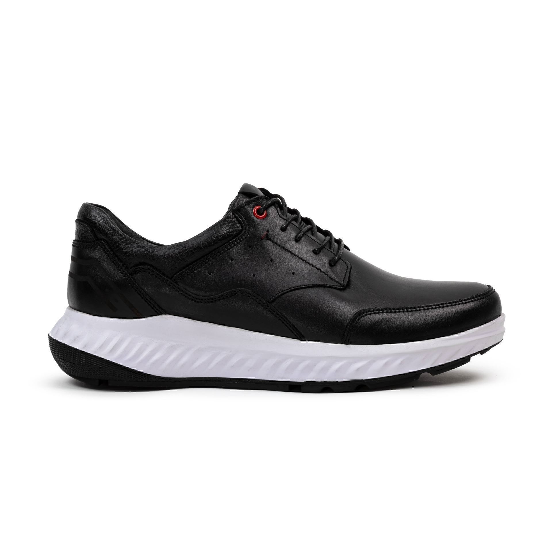 کفش مردانه چرمی شیما مدل لیون بندی مشکی زیره سفید