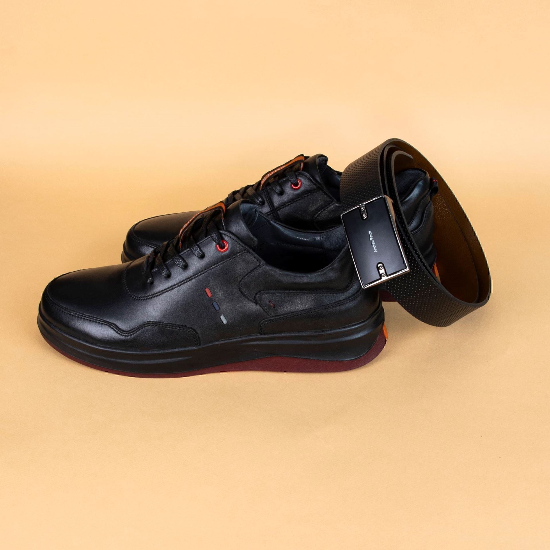 کفش مردانه چرمی شیما مدل تایگر بندی مشکی