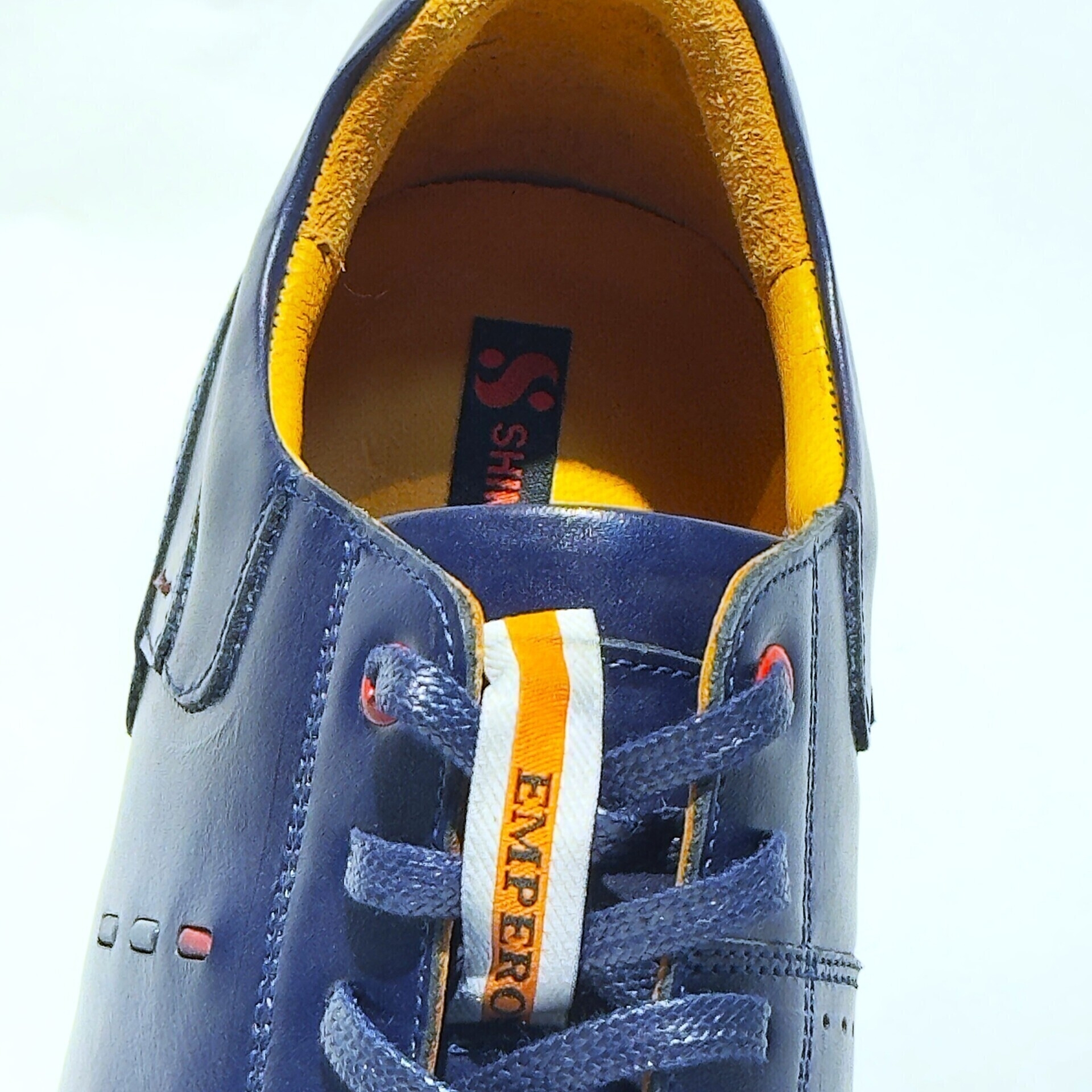 کفش مردانه چرمی شیما مدل تایگر بندی سرمه ای