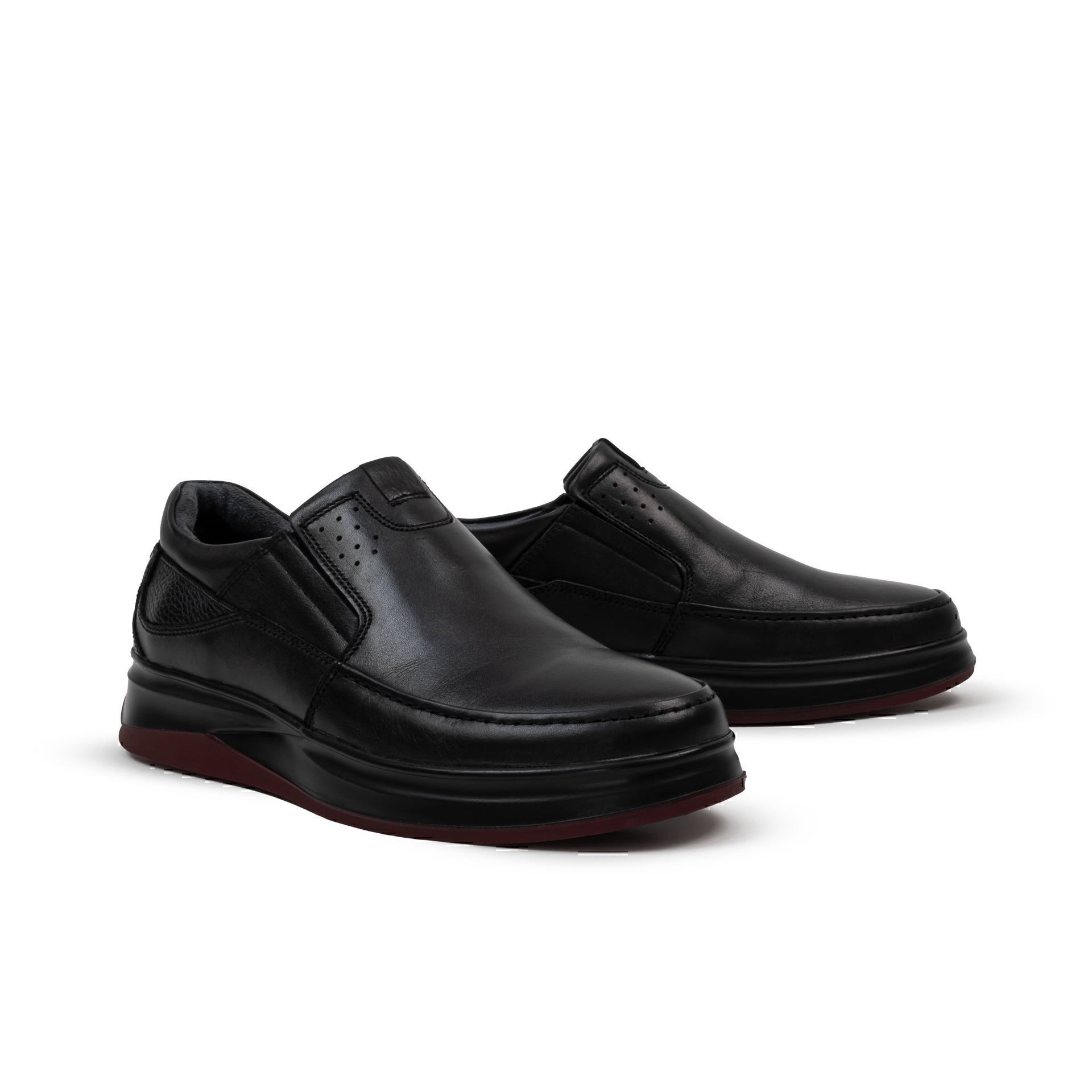 کفش مردانه چرمی شیما مدل تایگر بدون بند مشکی