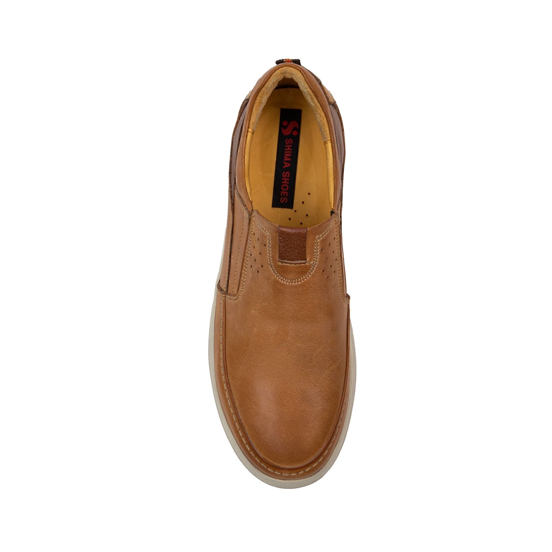 کفش مردانه چرمی شیما مدل تایگر بدون بند سفید