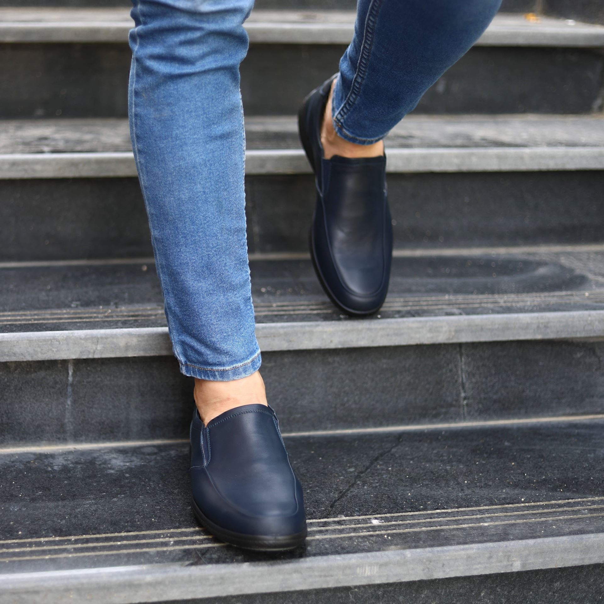 کفش مردانه چرمی شیما مدل زایس 102 سرمه ای