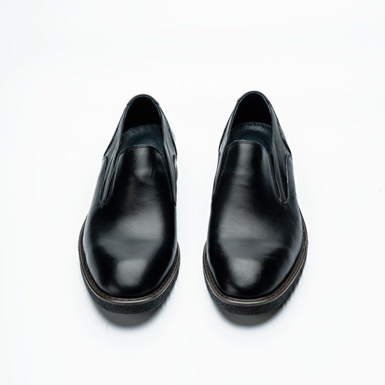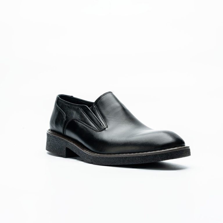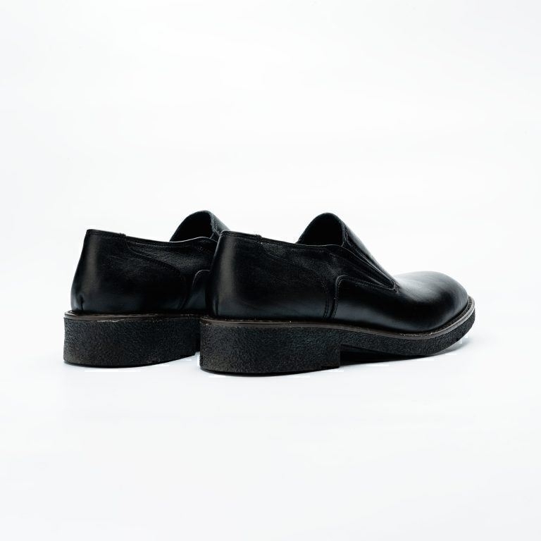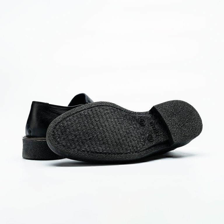 کفش مردانه چرمی شیما مدل آلبرت ملوانی بدون بند مشکی
