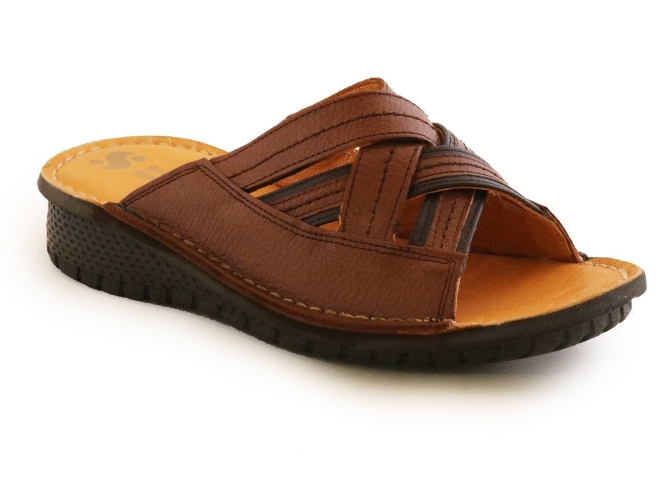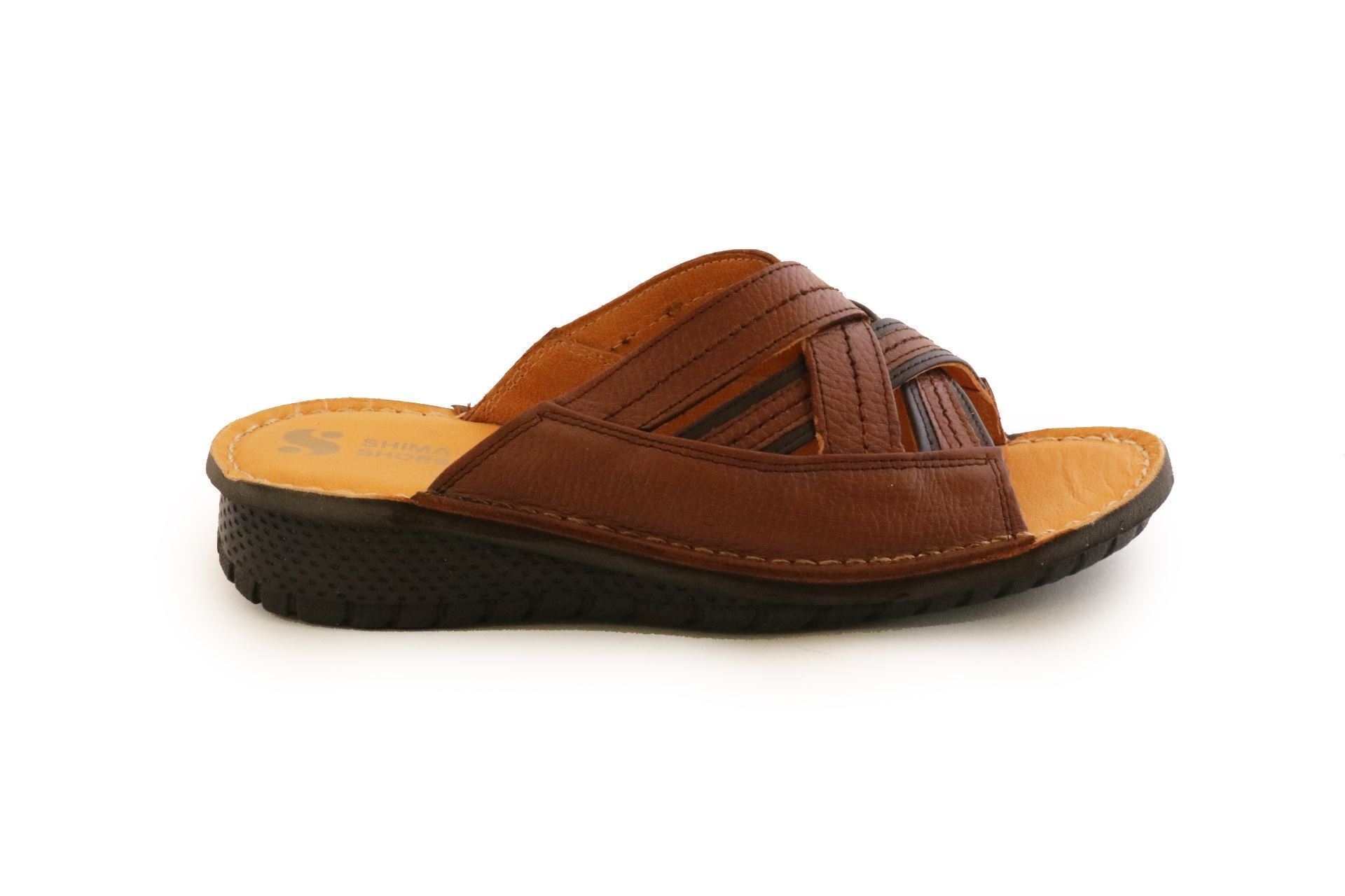 دمپایی چرمی مردانه شیما مدل آیهان عسلی