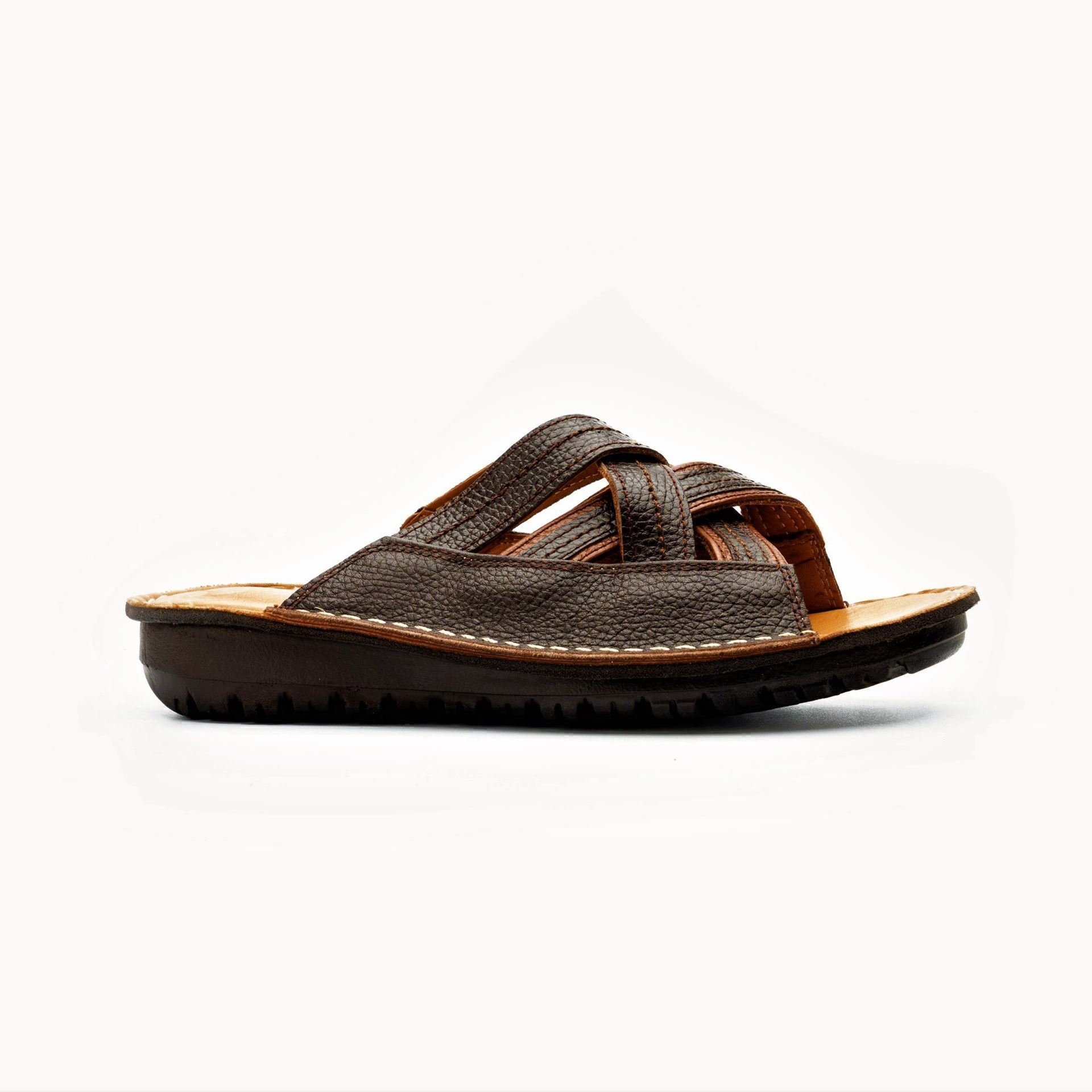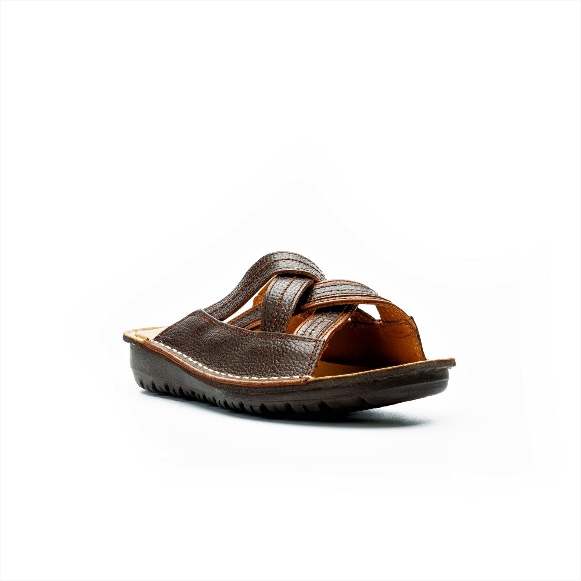 دمپایی چرمی مردانه شیما مدل آیهان قهوه ای