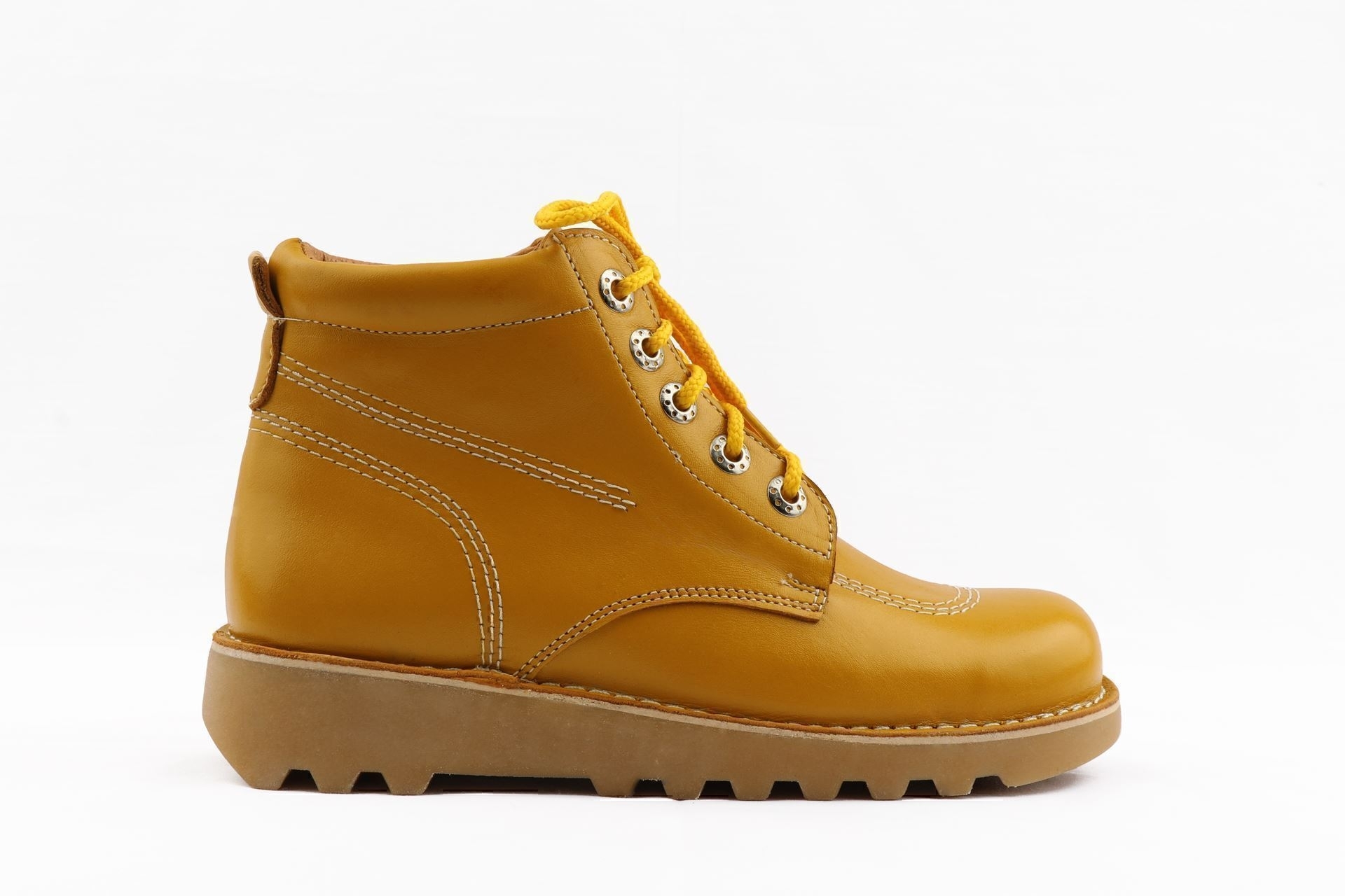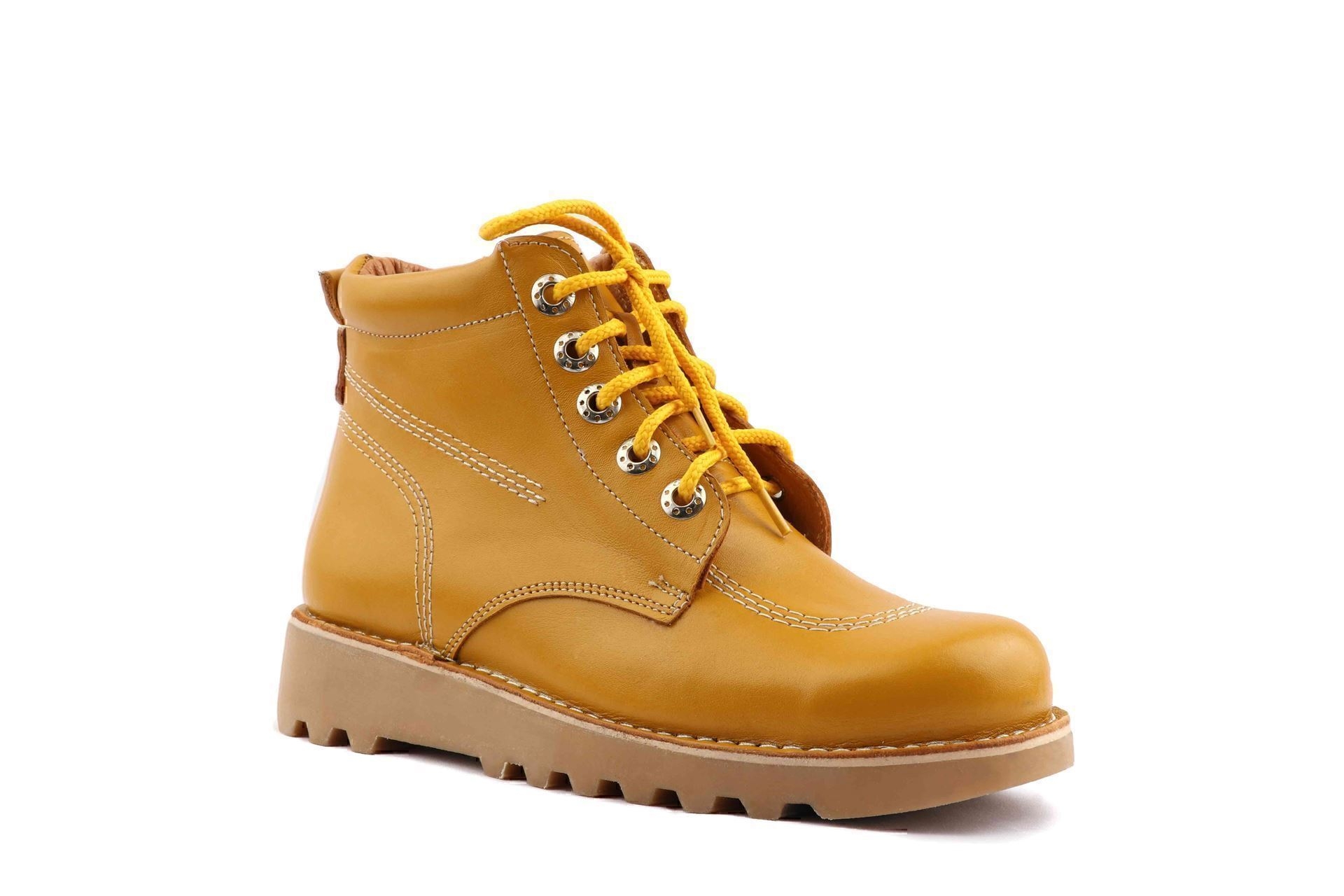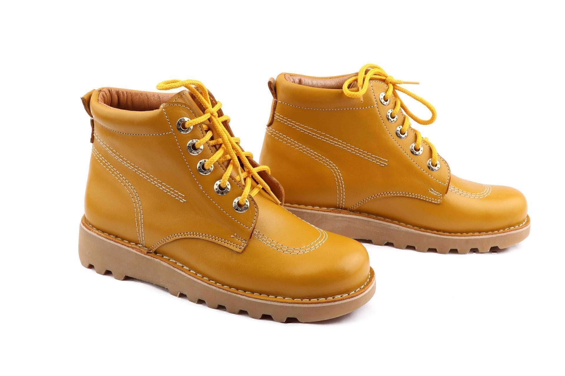 نیم بوت زنانه چرمی شیما مدل کیکرز زرد