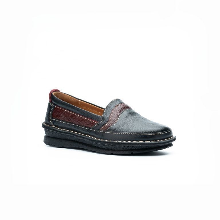 کفش زنانه چرمی شیما مدل آنیل مشکی زرشکی