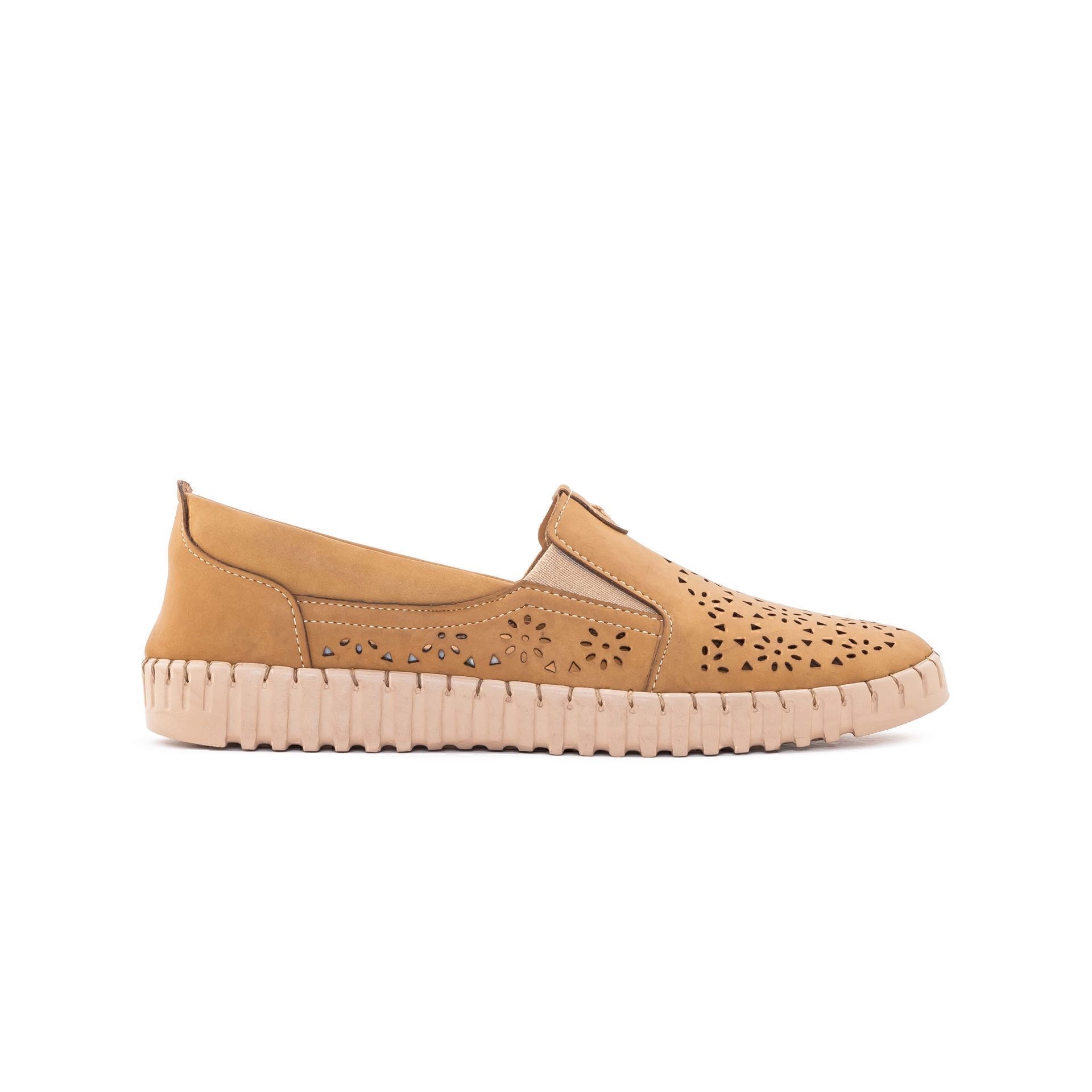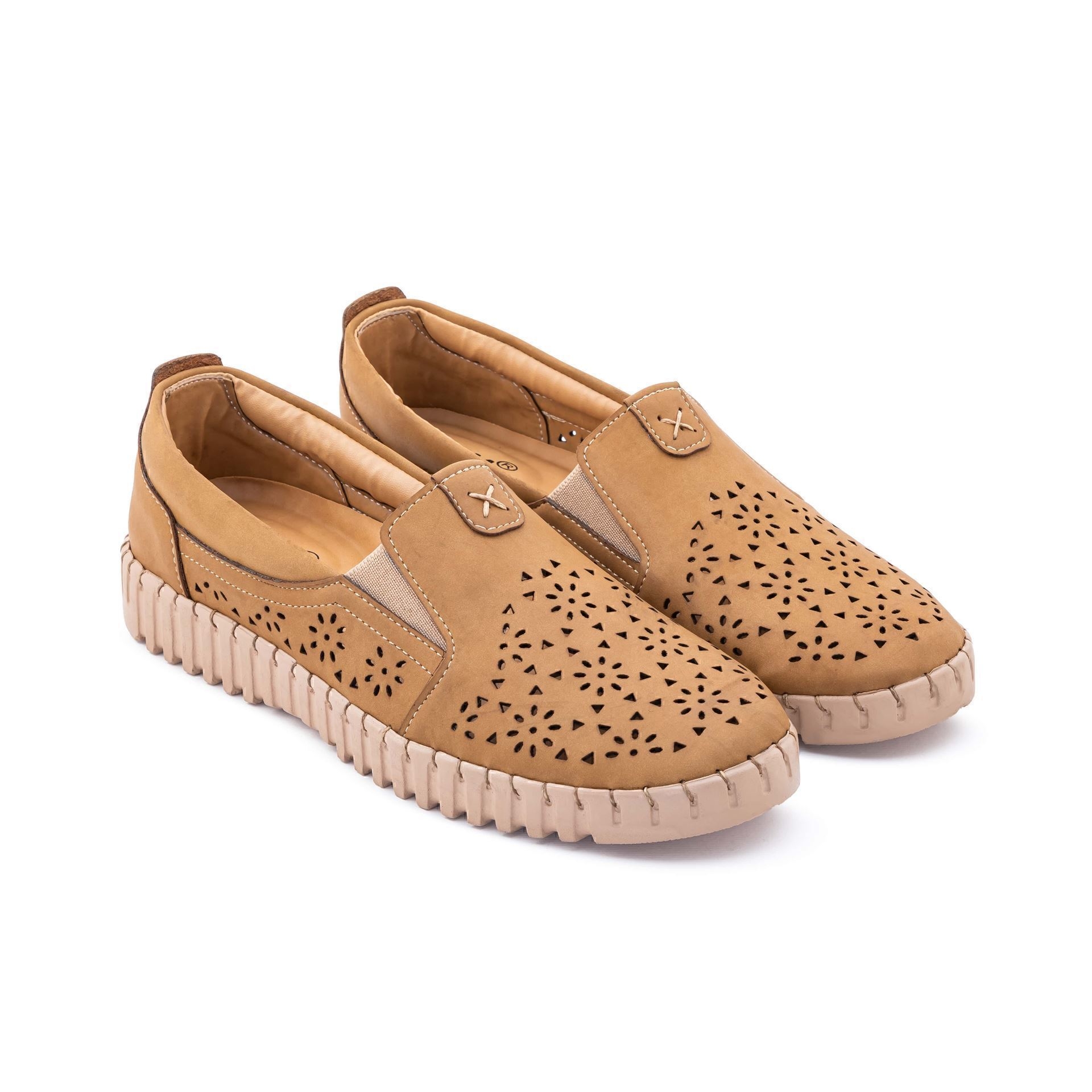 کفش زنانه چرم مصنوعی شیما مدل باران عسلی