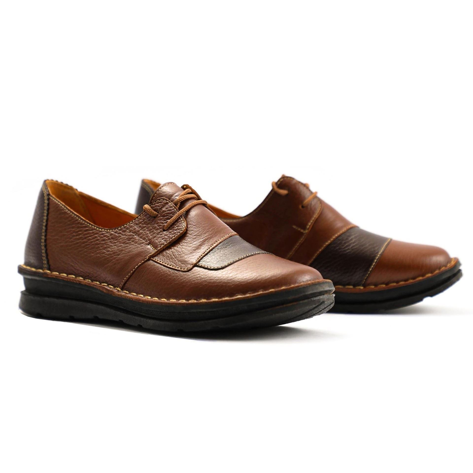 کفش زنانه چرمی شیما مدل سویل عسلی قهوه ای