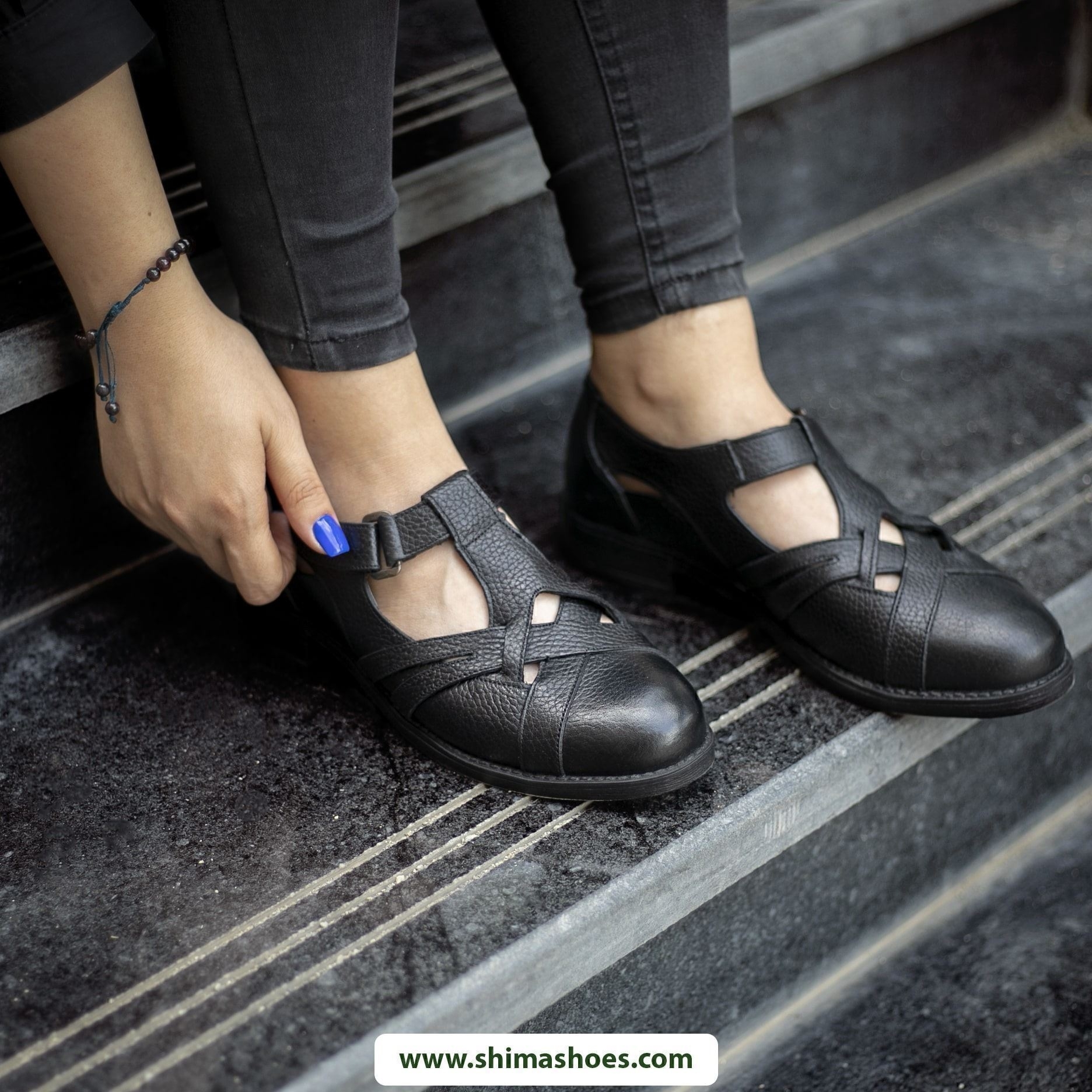 کفش زنانه چرمی شیما مدل HL121 طوسی