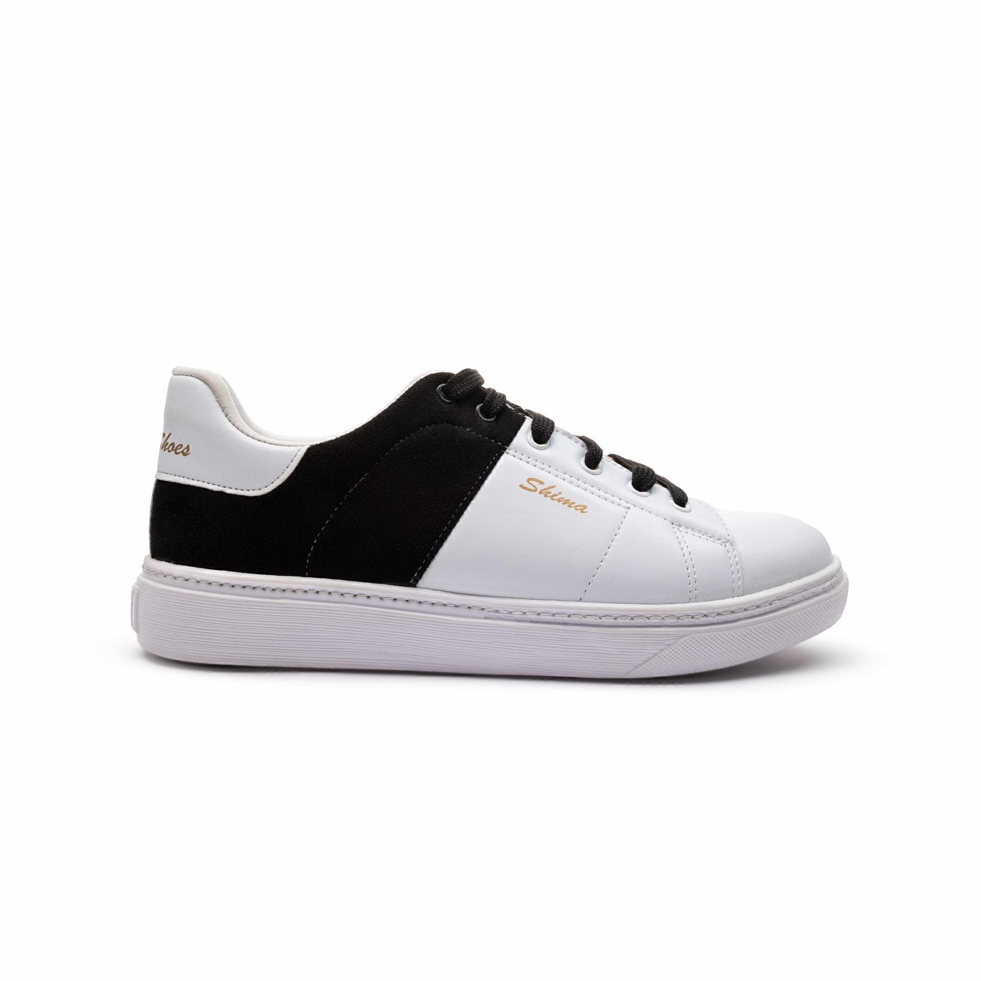 کفش زنانه چرم مصنوعی شیما مدل سوئیت سفید مشکی