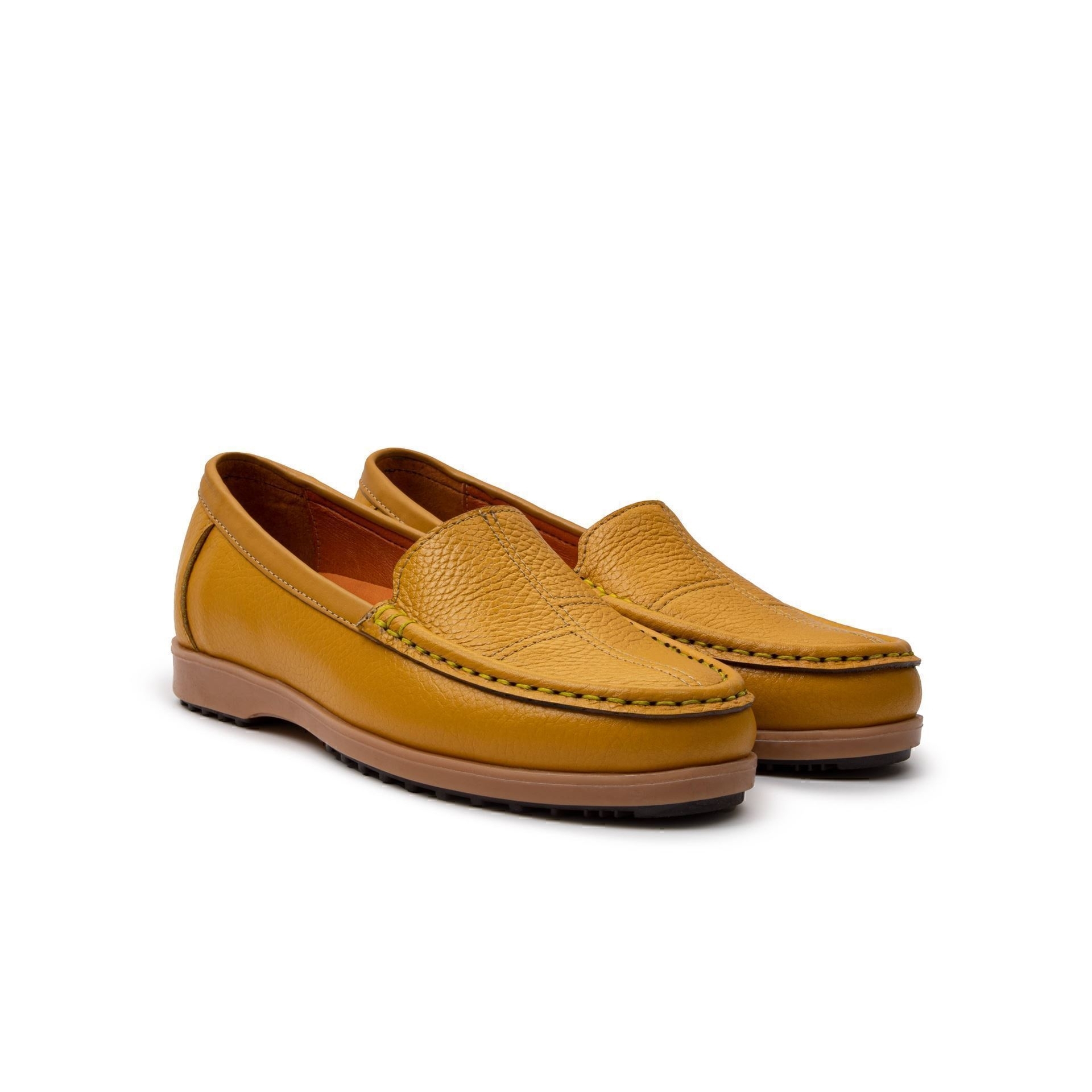 کفش زنانه چرمی شیما مدل کالج لاین عسلی