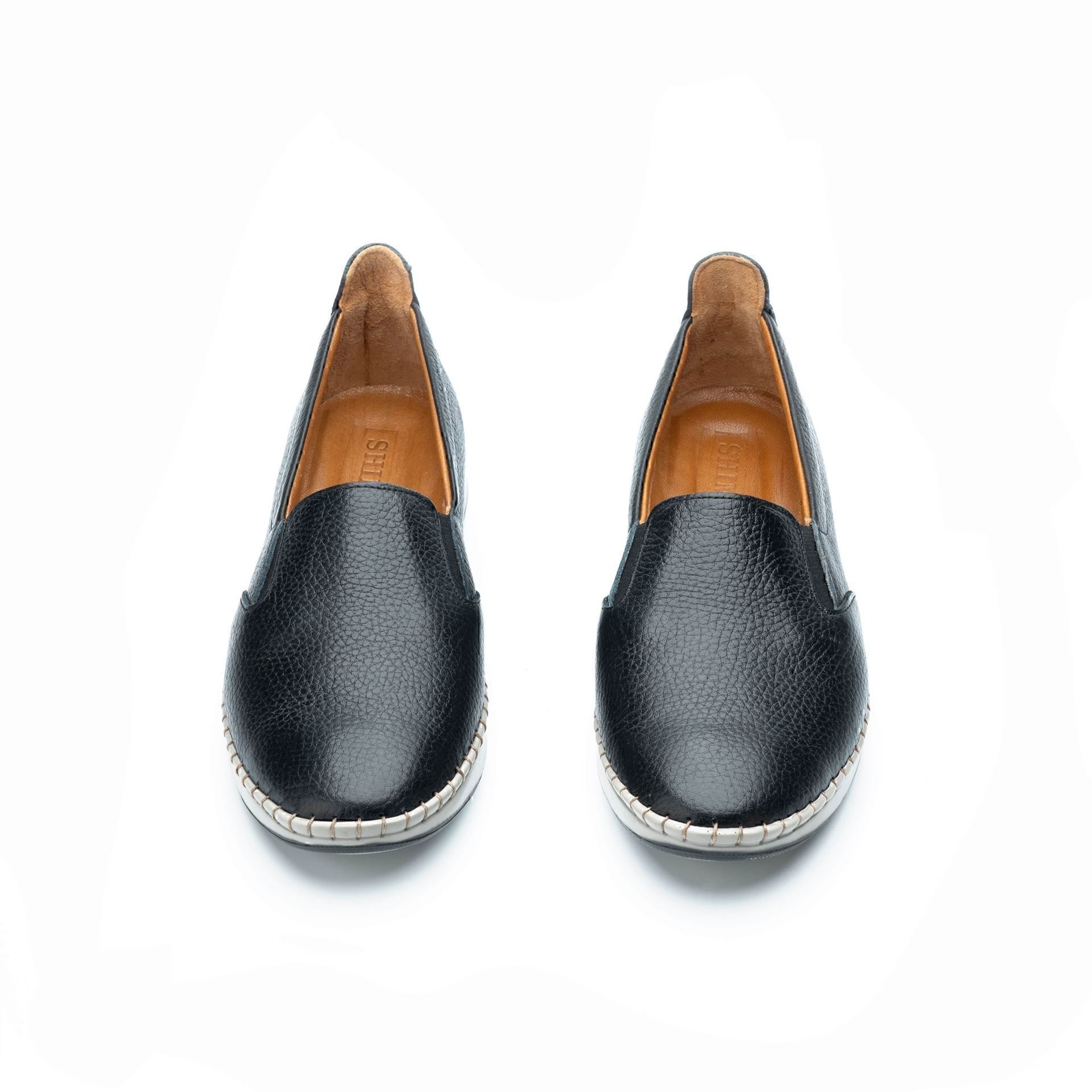 کفش زنانه چرمی شیما مدل ساتین بدون بند مشکی