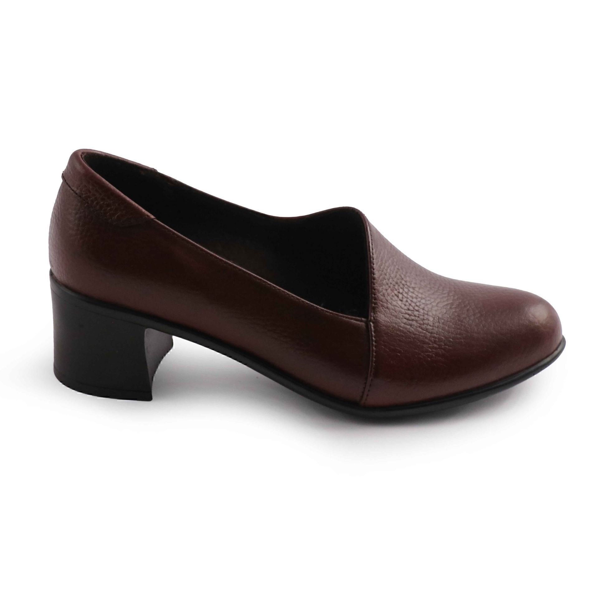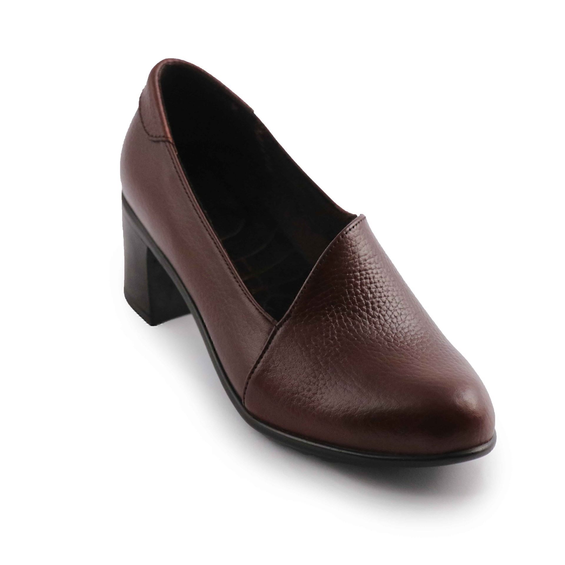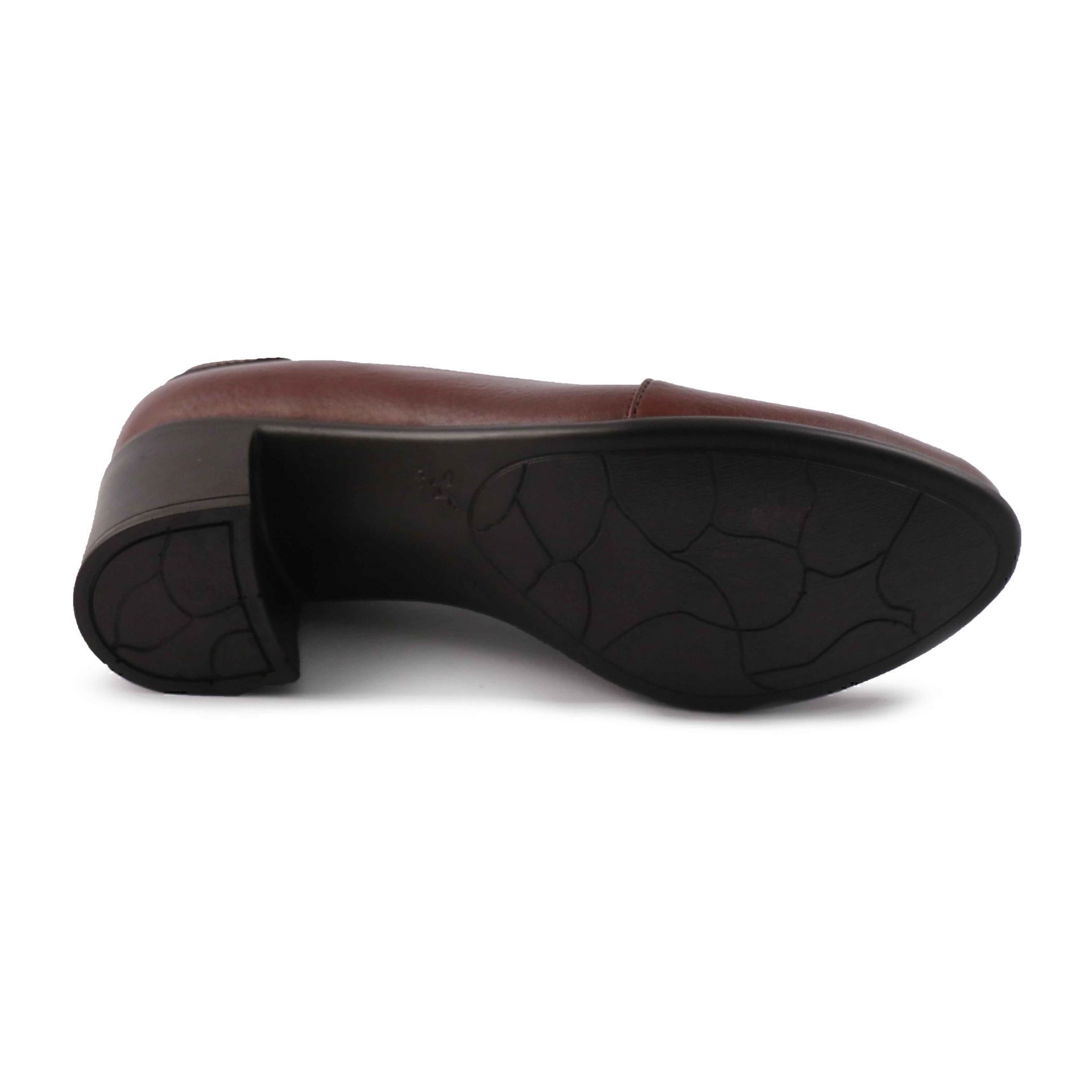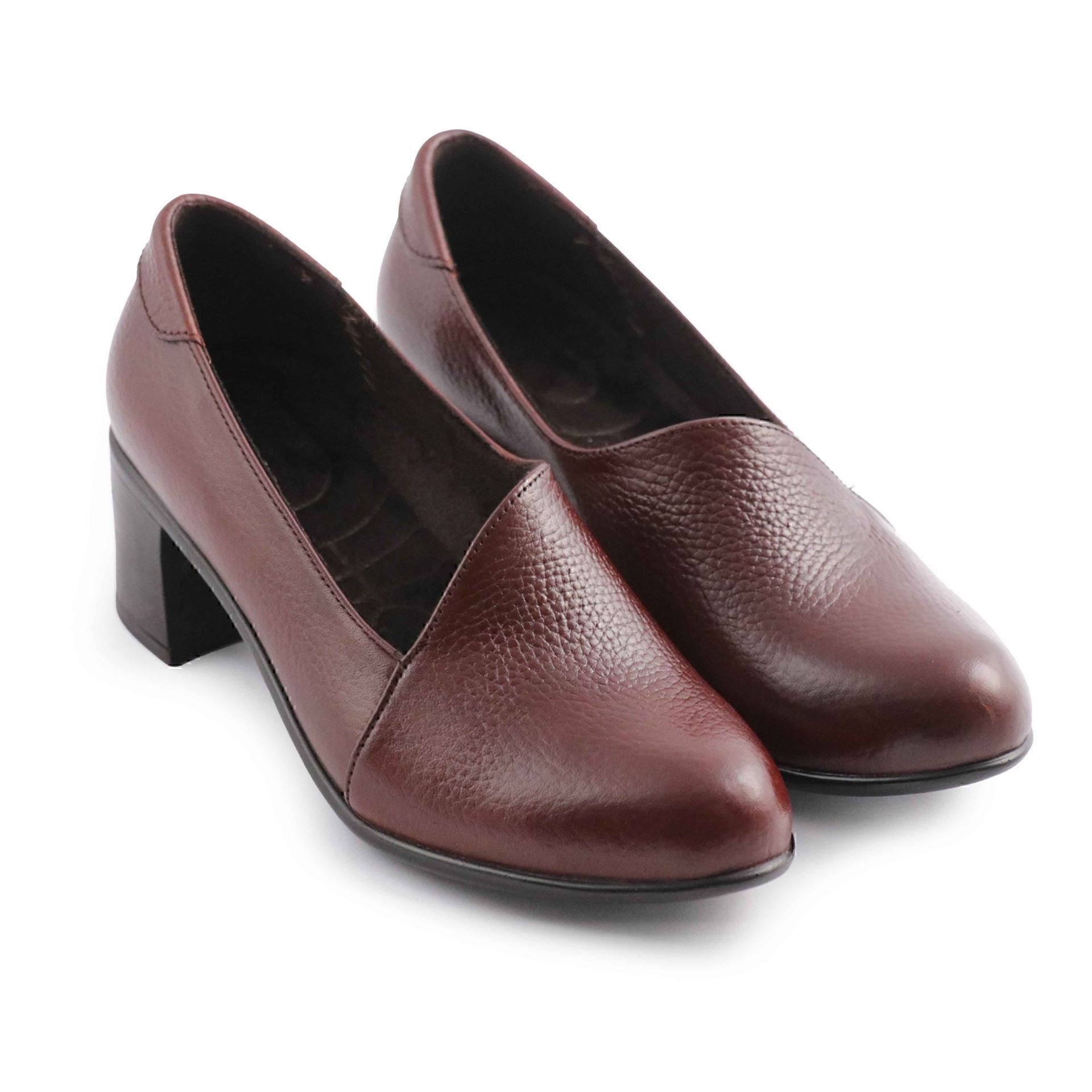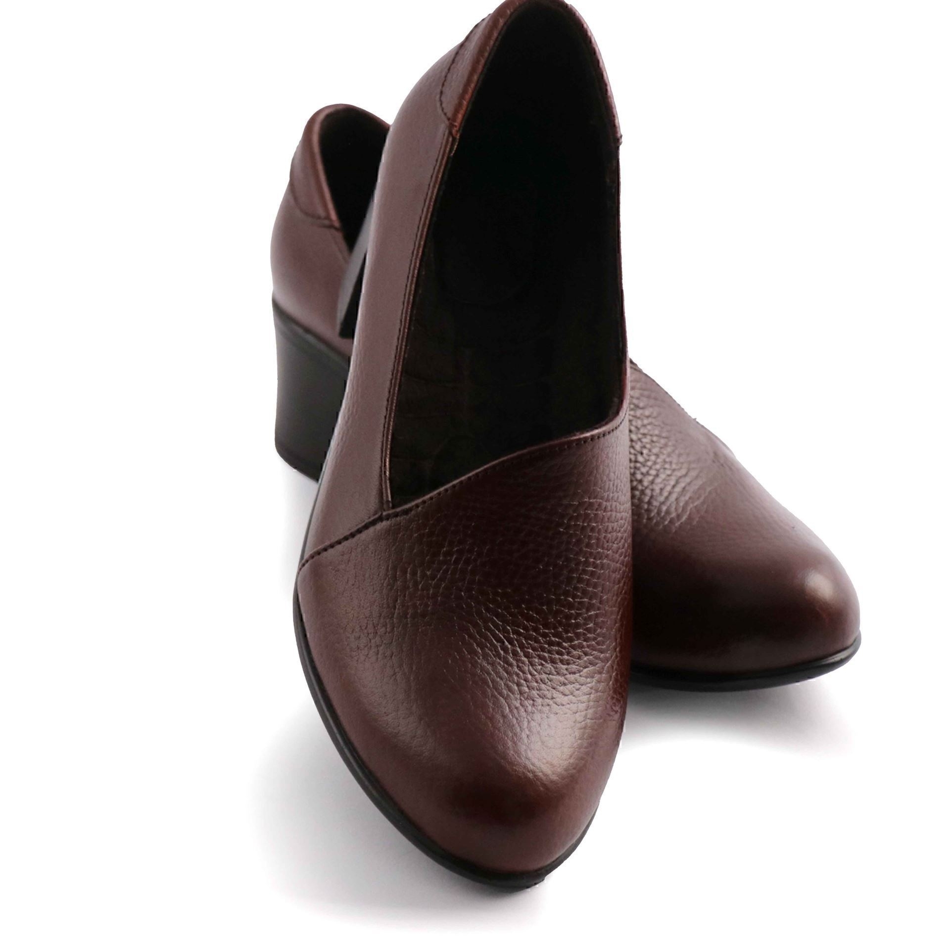 کفش زنانه چرمی شیما مدل دهنه کج سماقی