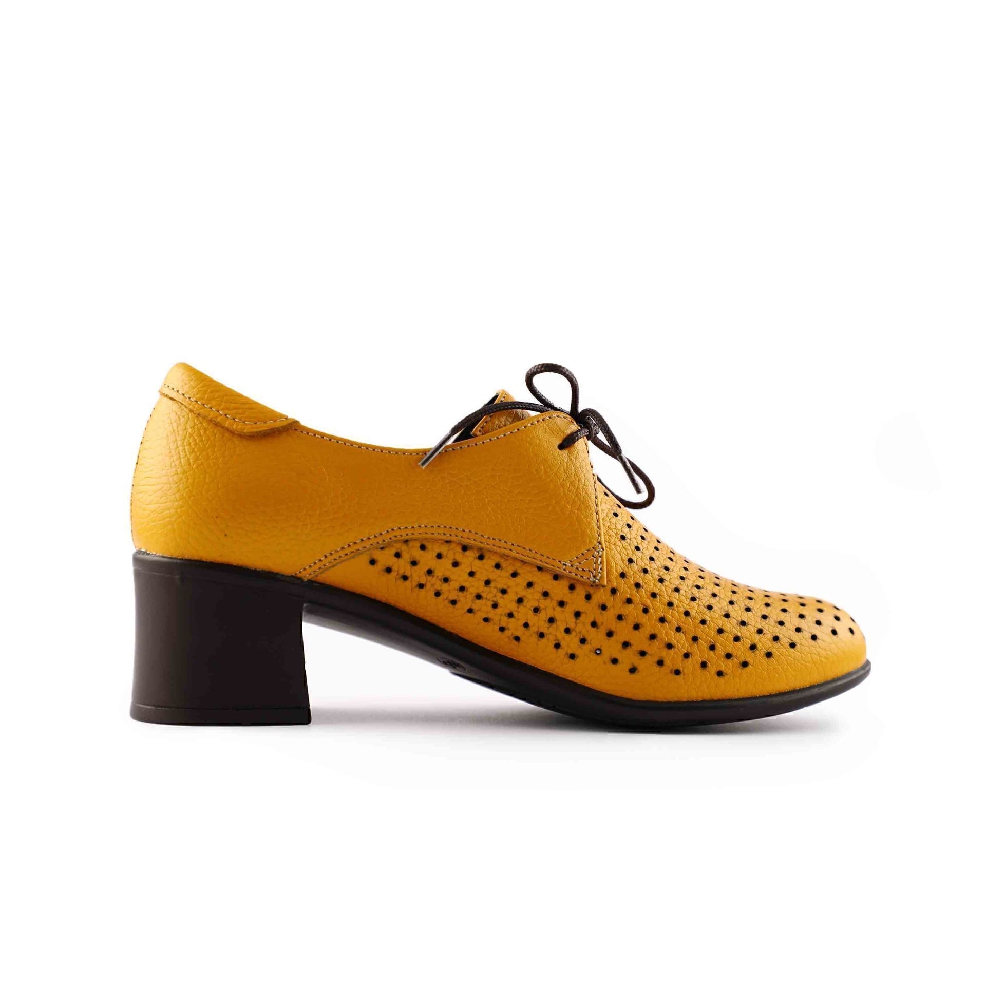 کفش زنانه چرمی شیما مدل لیزری تک بندی عسلی