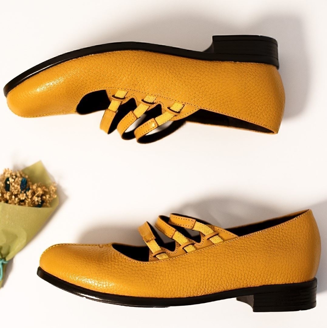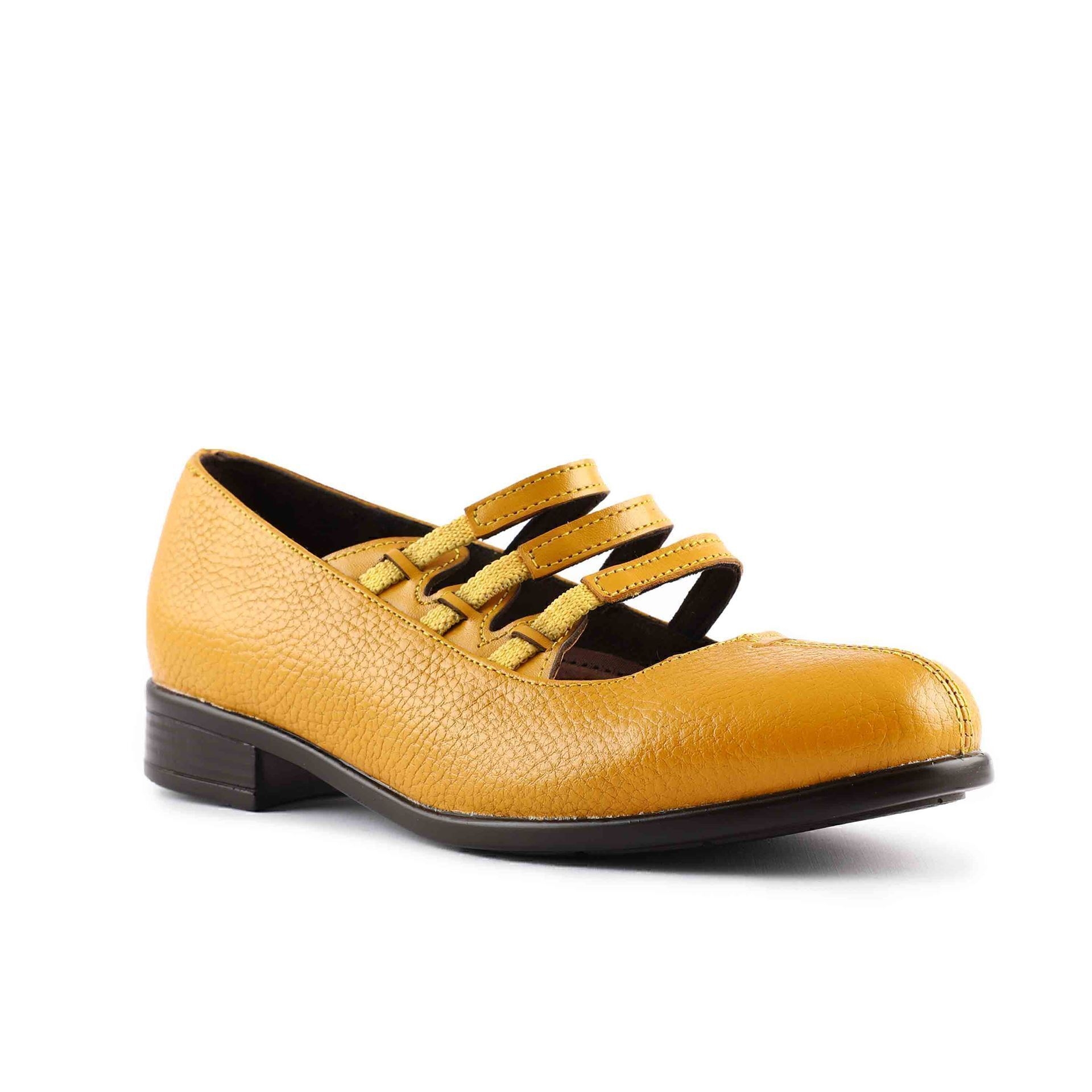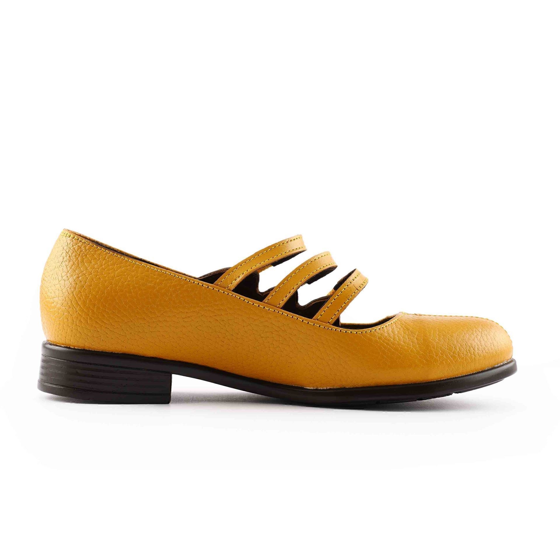 کفش زنانه چرمی شیما مدل هلن سه بند زرد