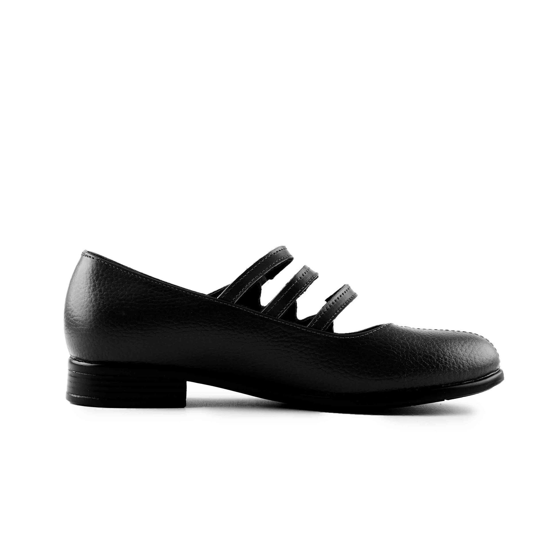کفش زنانه چرمی شیما مدل هلن سه بند مشکی