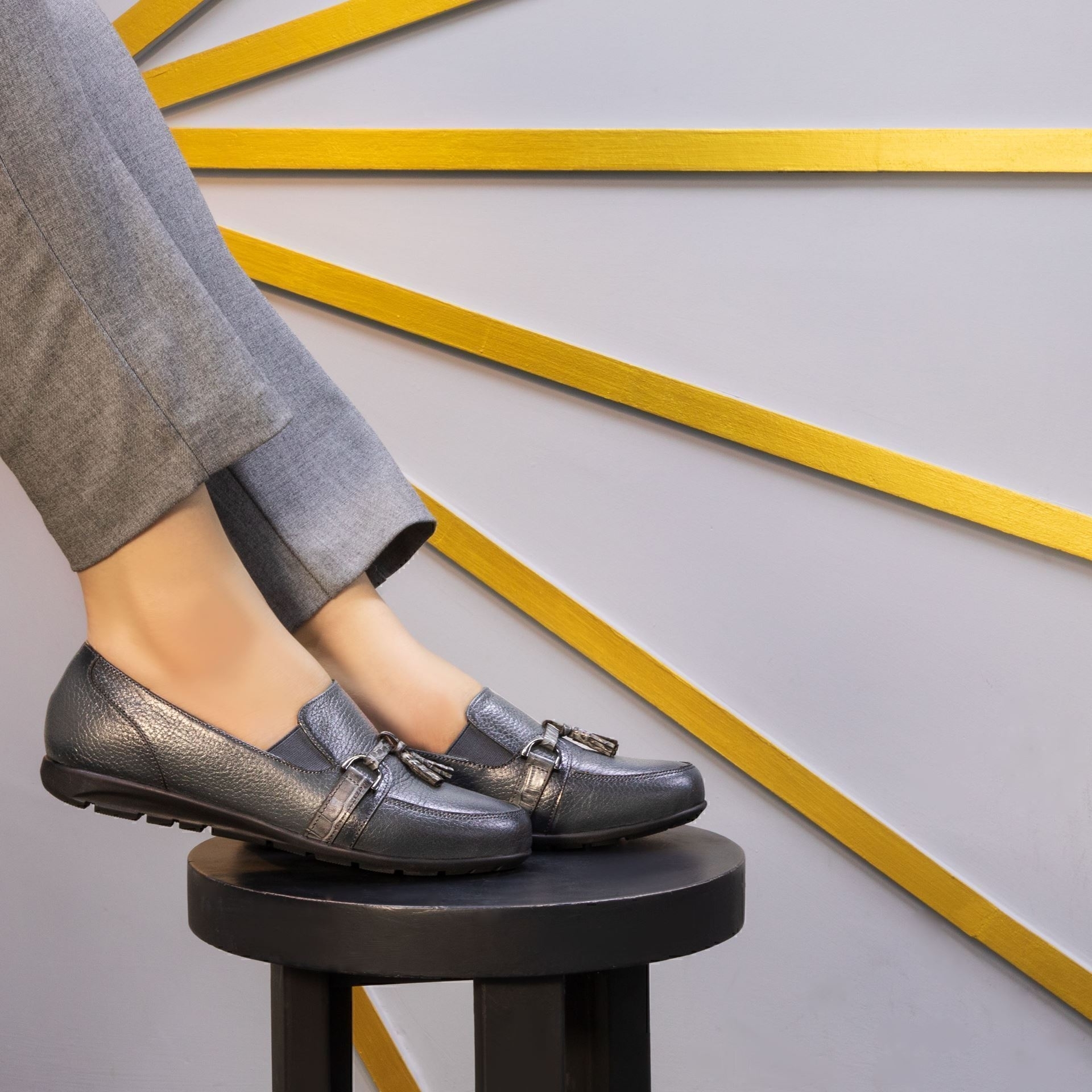 کفش زنانه چرمی شیما مدل کالج R177 طوسی