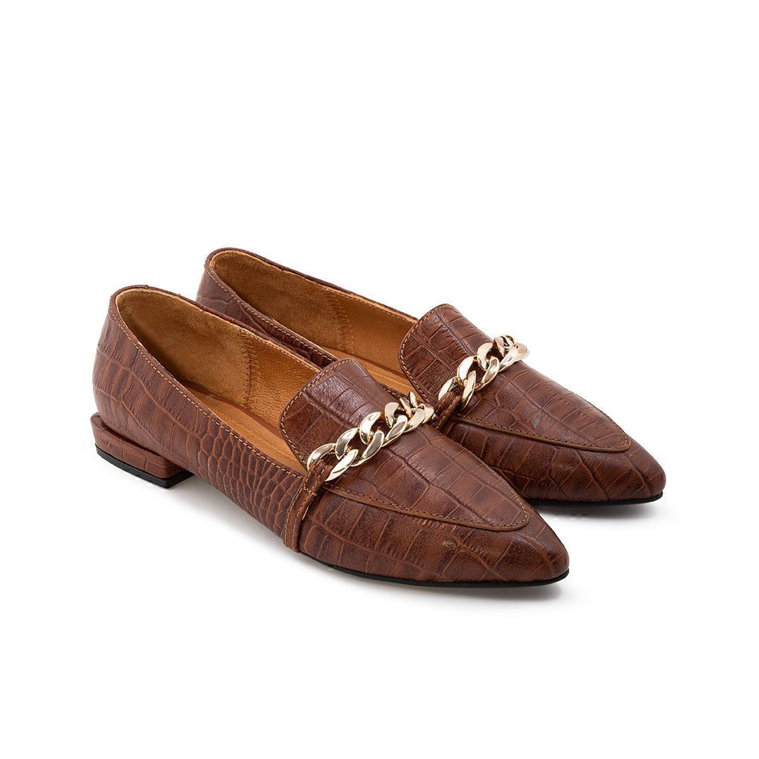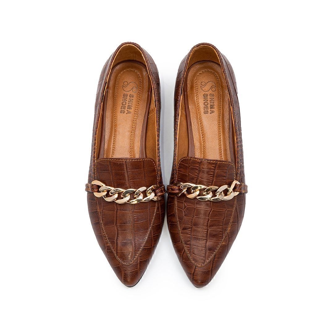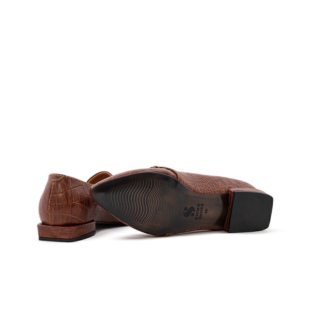 کفش زنانه چرمی شیما کد 14142 عسلی