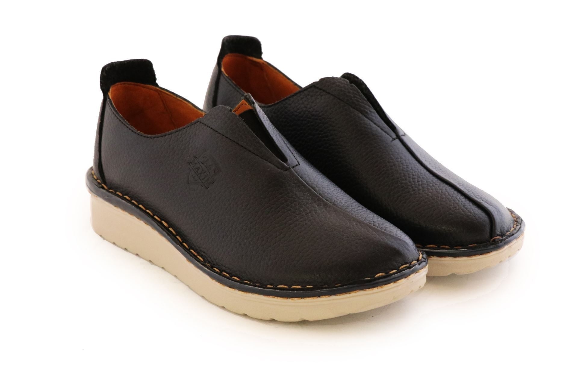 این کفش از رویه چرم طبیعی گاوی تهیه شده است آستر داخلی آن هاغ دارای ترکیب چرم و آستر است که از ایجاد بوی بد کفش جلوگیری می کند. این کفش بسیار راحت و طبی می باشد.
