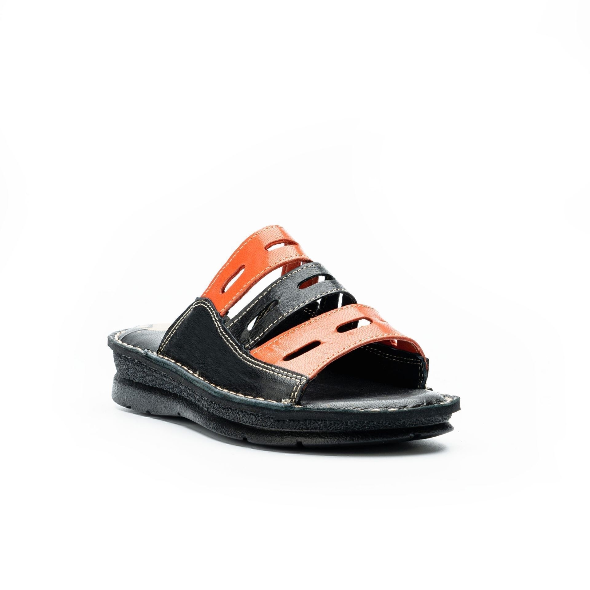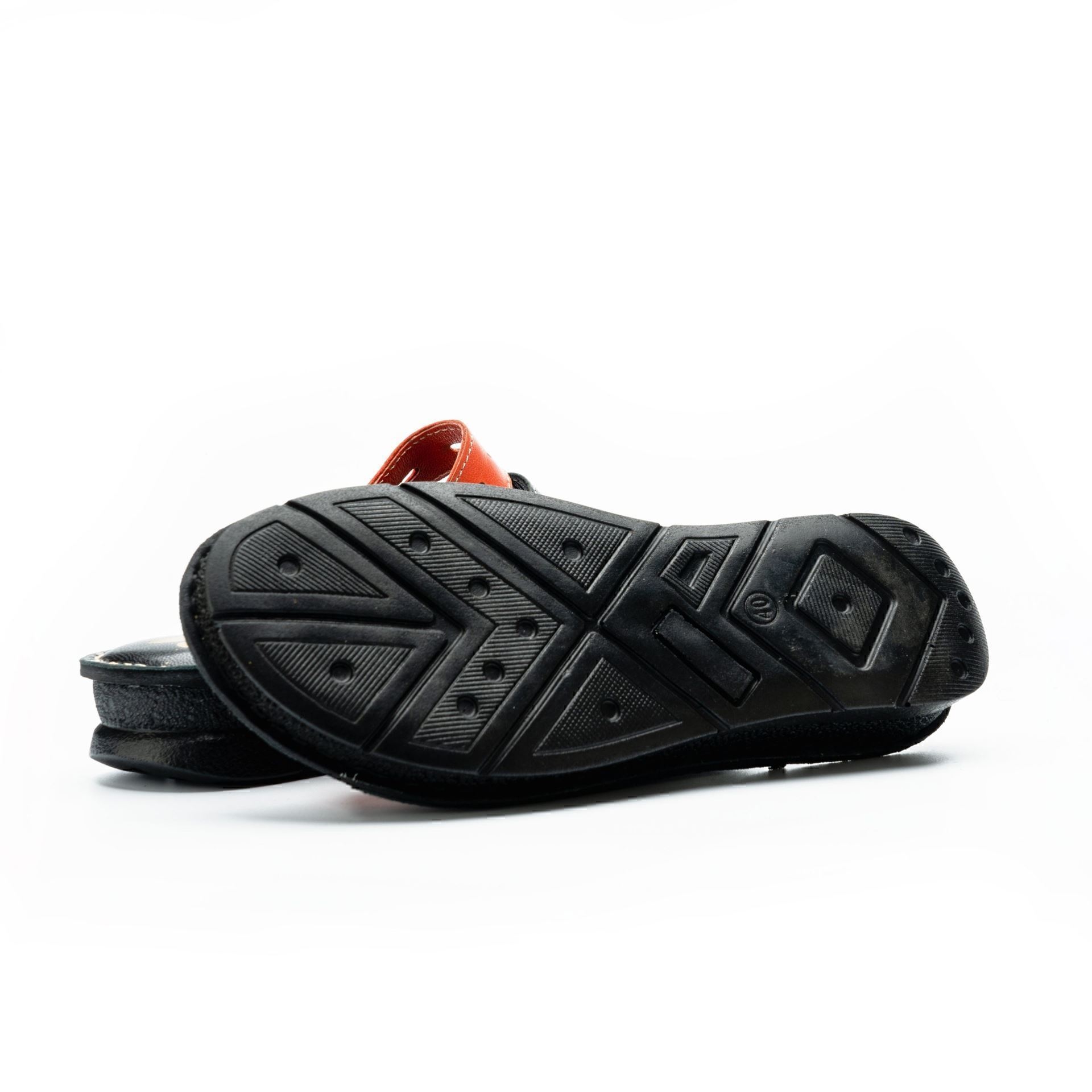 دمپایی زنانه چرمی شیما مدل سه بند مشکی قرمز